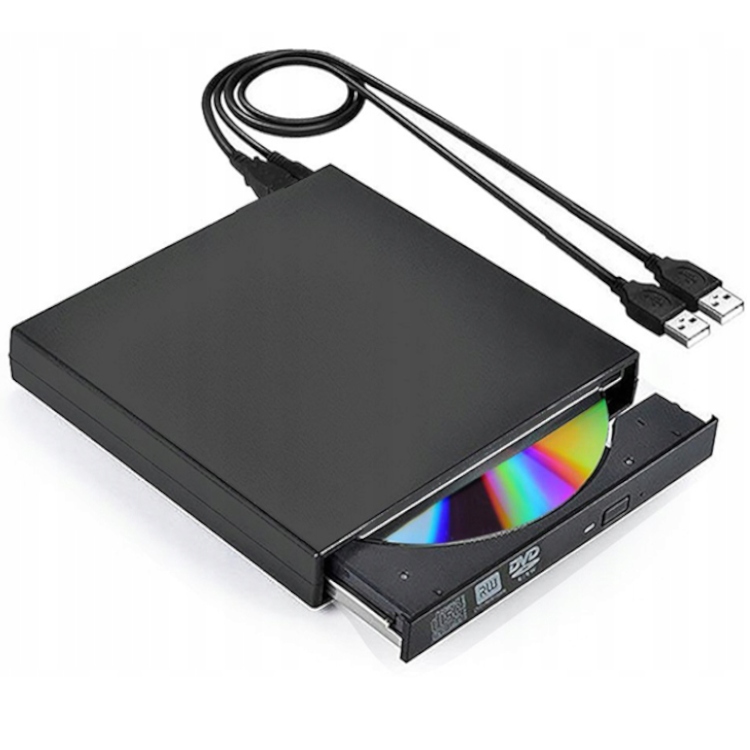 Зовнішній/портативний оптичний привід CD/DVD + Recorder CD -тип CD - у корпусі Slim - підключений до 2 USB -портів - вирішить проблему відсутності CD/DVD -приводу у вашому комп’ютері, планшеті, нетбуці або ноутбуці. настільний комп'ютер (коли на материнській платі не вистачає прорізів), ноутбука або нетбука, в яких немає фабричного приводу CD та планшета (якщо у нас є 2 розетки USB, що підтримують зовнішні пристрої). Зовнішній привід CD/DVD також може використовуватися як завантажувальний диск , з якого можна запустити систему або її установки.