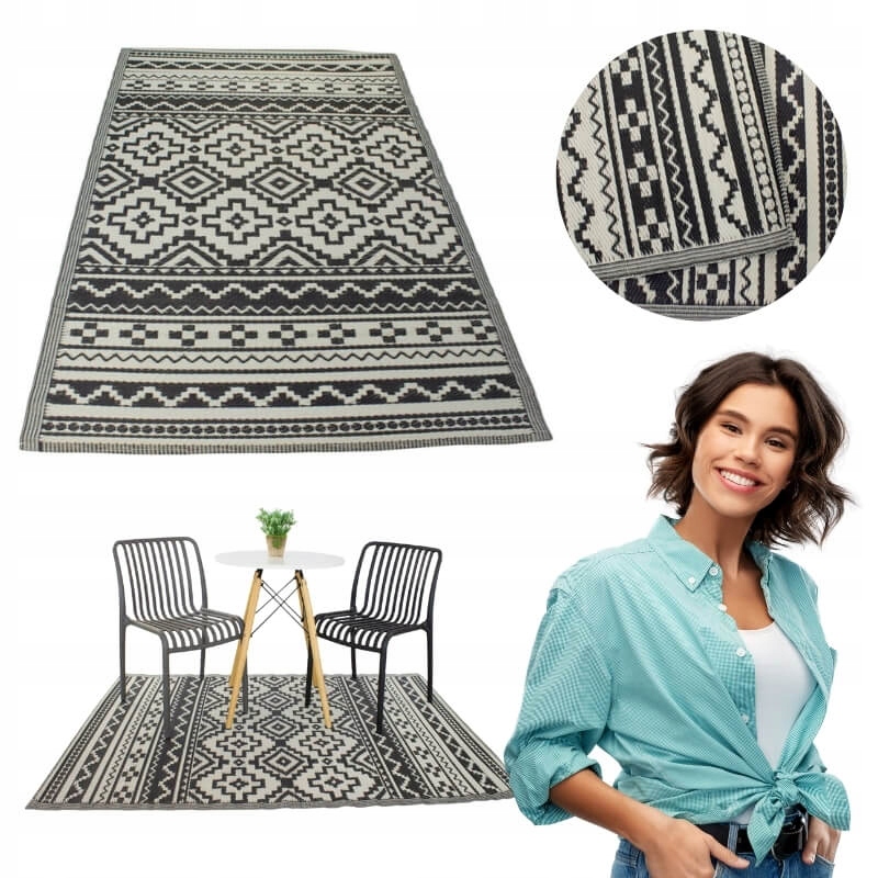 Зовнішній килим на балконній терасі 120x180 Великий водонепроникний чорний бохо