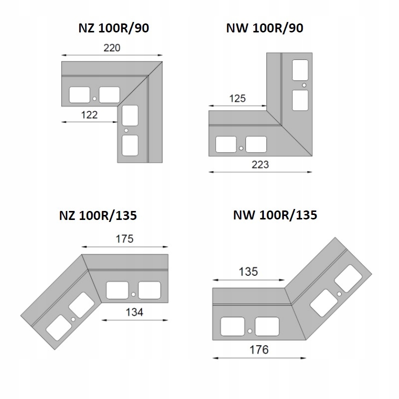 Зовнішній кут з кутом 90° для карнизного профілю K100R.