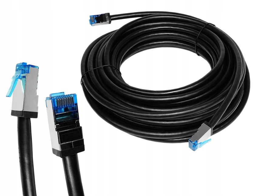 Високоякісний кабель RJ45/RJ45 довжиною 15 м, призначений для встановлення мережі поза будівлями, наприклад, у розподільних точках, підключення абонентських розеток до мережевих пристроїв, підключення в системах моніторингу відеоспостереження або підключення бездротових пристроїв Wi-Fi. Кабель в прямому з'єднанні 1:1, з товстою 4-парної крученої пари AWG 24 з міді. Оснащений подвійним покриттям, стійким до УФ-випромінювання, корозії та води. Роз’єми RJ45 з обох сторін, захищені кришкою з гнучким запобіжником натягу, щоб запобігти пошкодженню кабелю. Кабель також ідеально підходить для живлення через технологію POE.