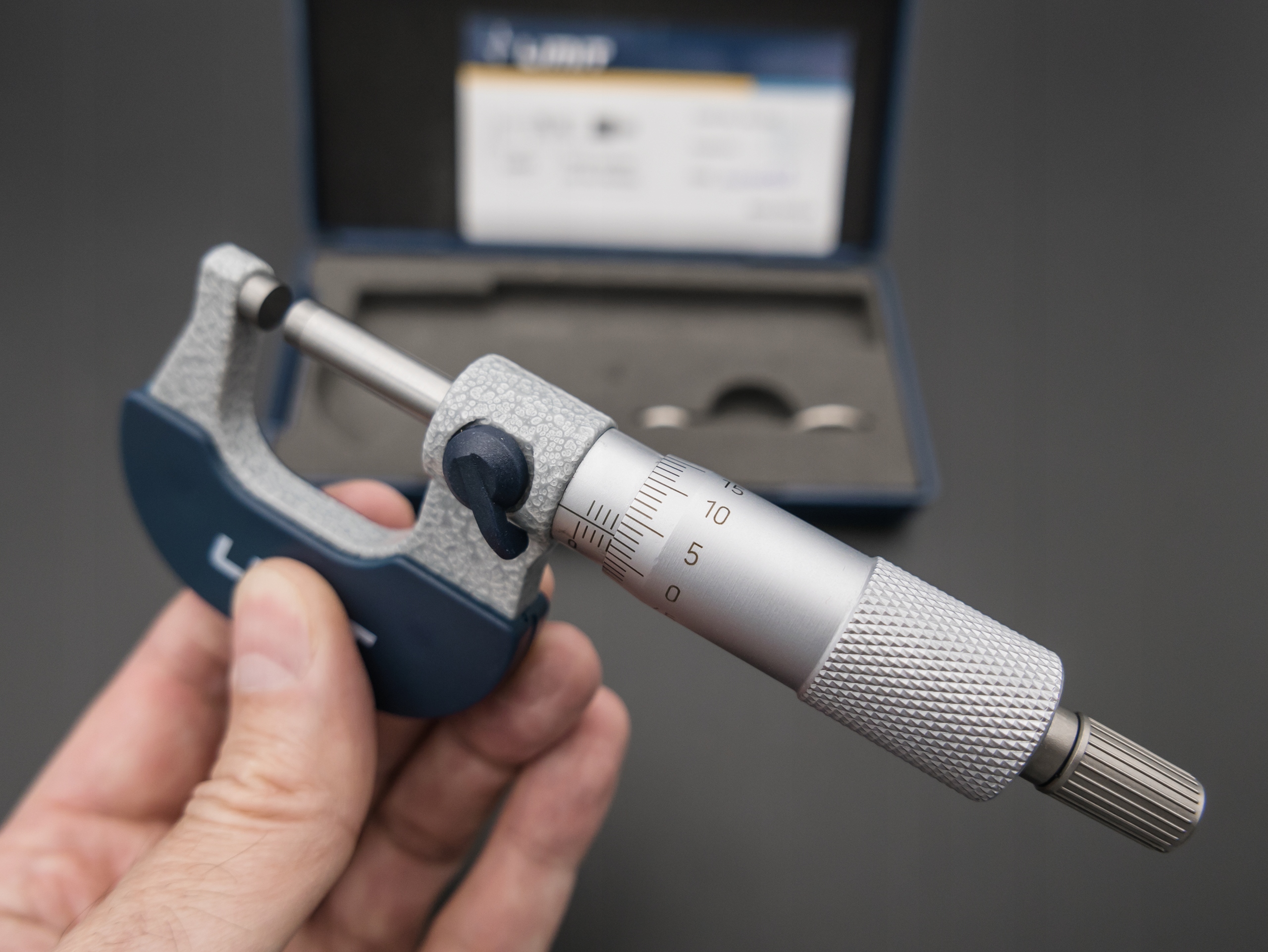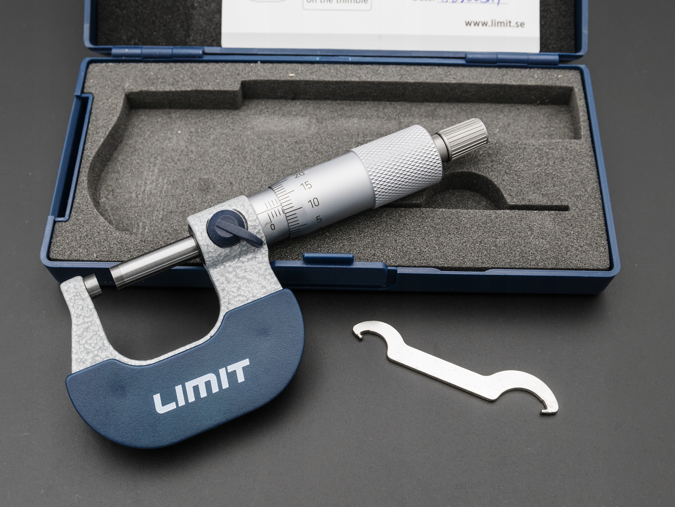 Мікрометр з кованою оправою та матовою хромованою шкалою, призначений для вимірювань на відкритому повітрі. Загартований шпиндель діам. 6,5 мм з прецизійними твердосплавними вимірювальними поверхнями. З втулкою з фрикційною муфтою і фіксуючим важелем. Виготовлено відповідно до DIN 863.