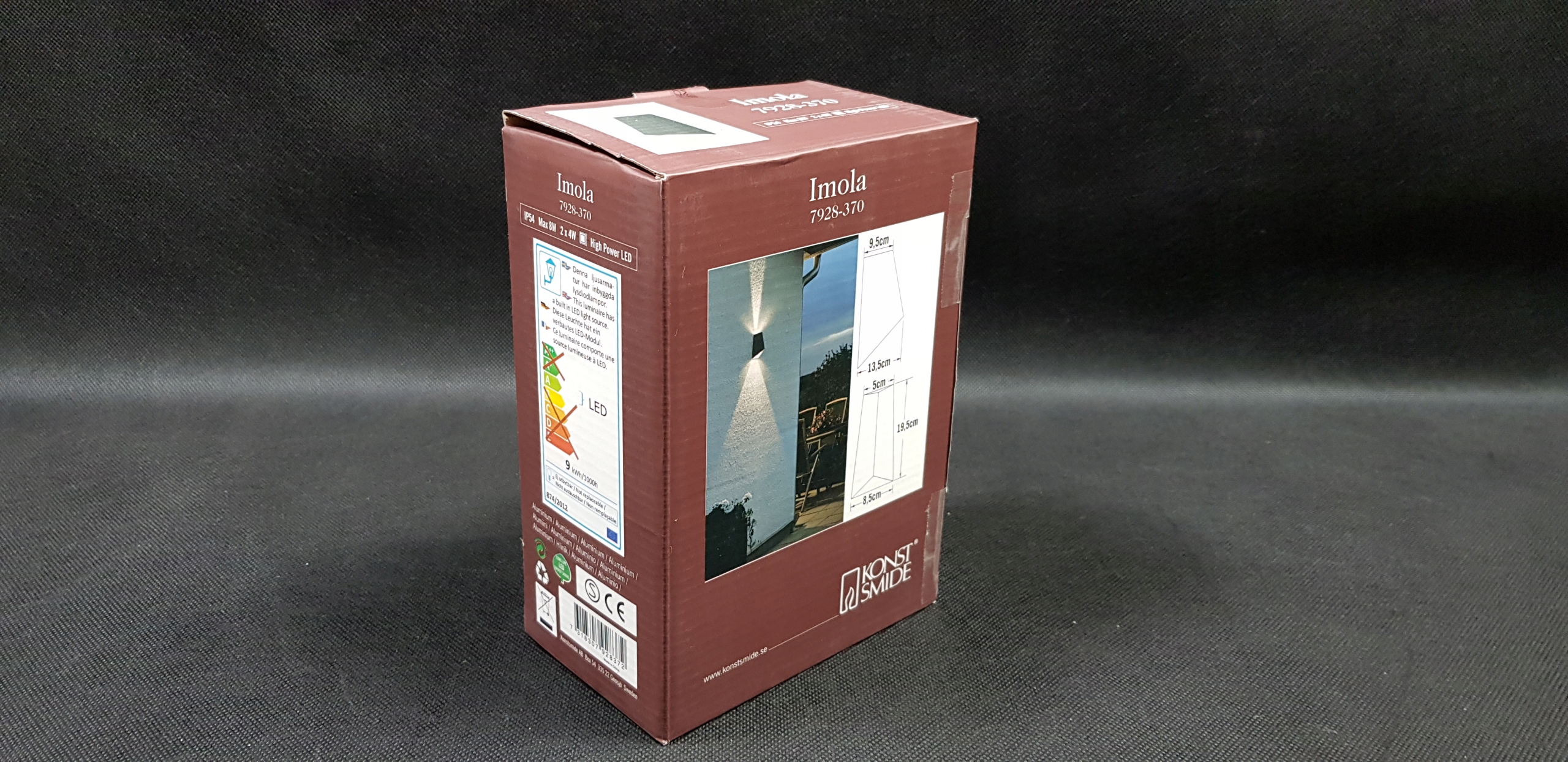 Стійкий металевий корпус із малопотужними світлодіодними модулями з джерелом світла 2 x 4 Вт (2 x 250 лм). Забезпечує ширший промінь (45 градусів) і вужчий промінь (20 градусів) вгору. Колірна температура світла тепла 3000 К. Клас захисту IP54.