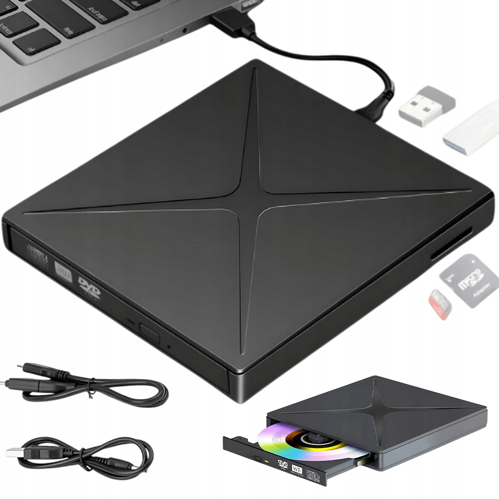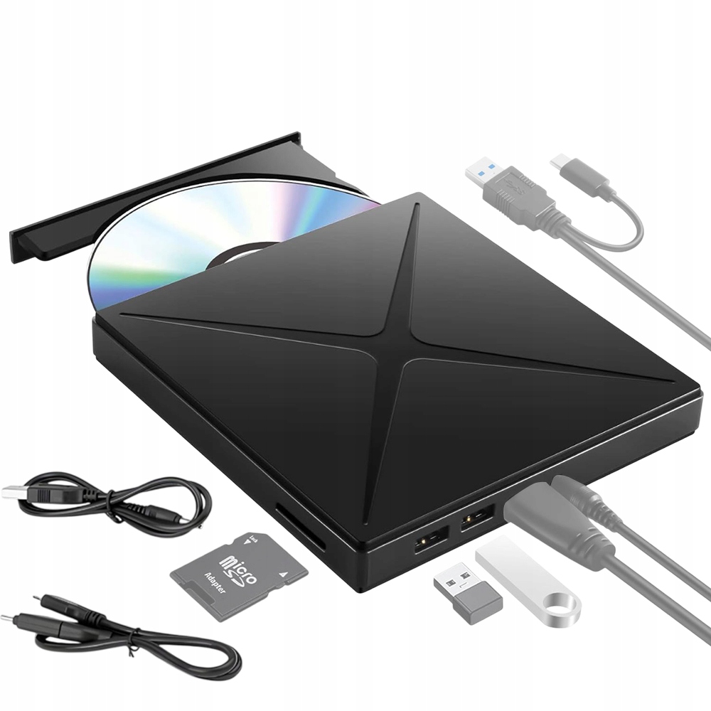 ⭐ продукт 4in1 - пристрій буде працювати не лише як зовнішній привід CD/DVD, оскільки він також має два порти USB 2.0/3.0 - які дозволяють підключити інші пристрої до комп'ютера, USB -C та вбудований -in SD -зчитувач SD