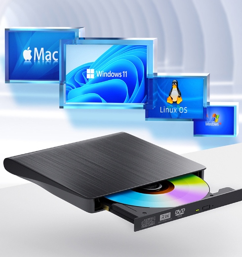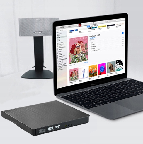 Високоякісний зовнішній накопичувач дозволить вам записувати компакт-диски та відтворювати компакт-диски/DVD-диски на вашому ноутбуці, Macbook, настільному комп’ютері чи моноблокі. Корисний продукт, особливо якщо ваш ноутбук не має CD-приводу. ПідтримкаUSB 3.0 із зворотною сумісністю з нижчими стандартами забезпечує швидку передачу даних до 5 ГБ/с.