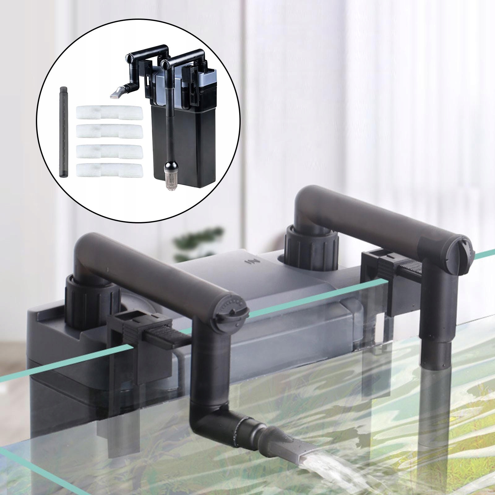 Корпус підвішений на зовнішній стінці акваріуму, що поліпшують акваріумну фільтрацію з 4/5 градусами каністра, завдяки якому він контактує з більшою кількістю фільтраційних матеріалів для ефективного очищення