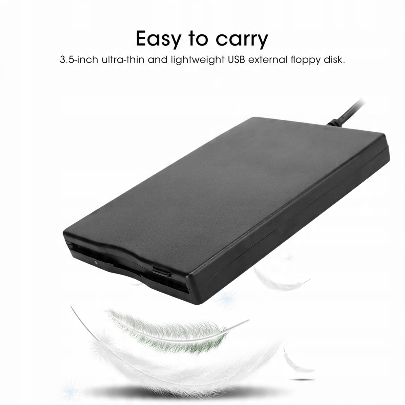 1. 3,5-дюймовий ультратонкий і легкий зовнішній дискету USB легко носити з собою, ідеально підходить для настільних комп’ютерів і ноутбуків.
