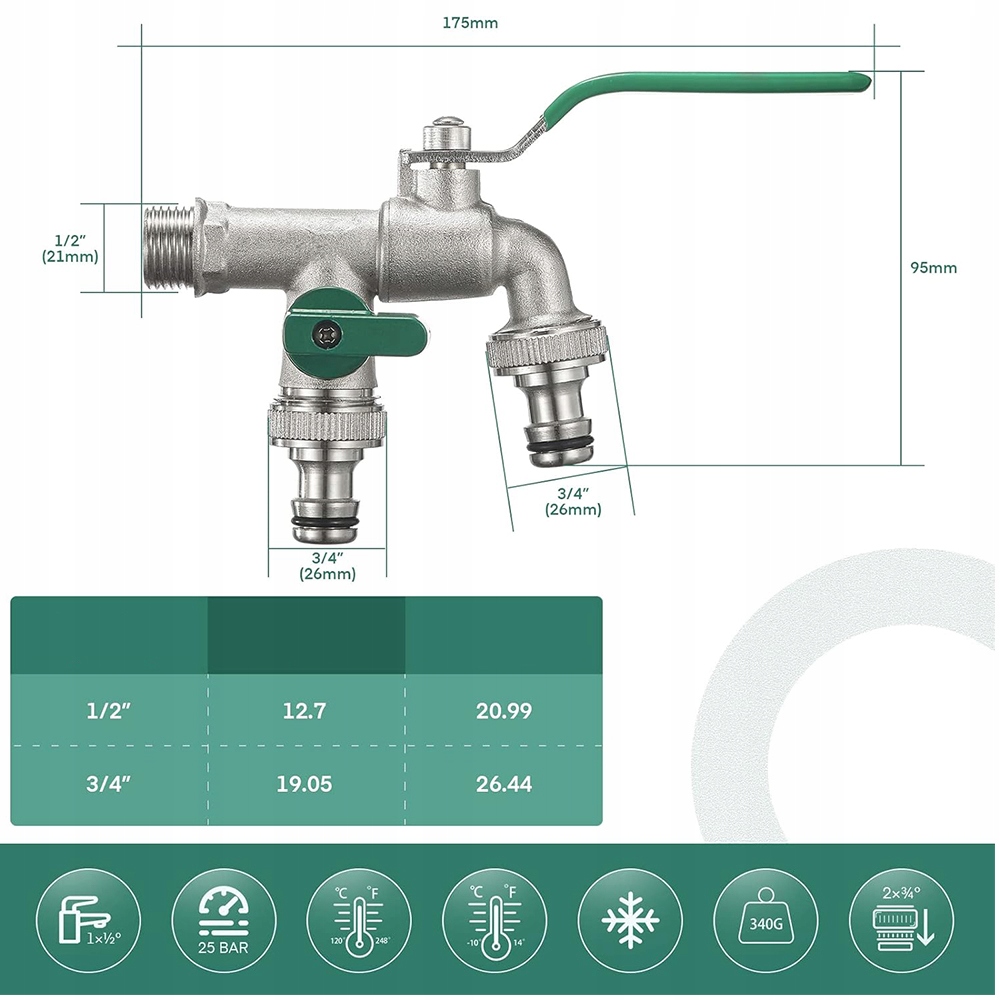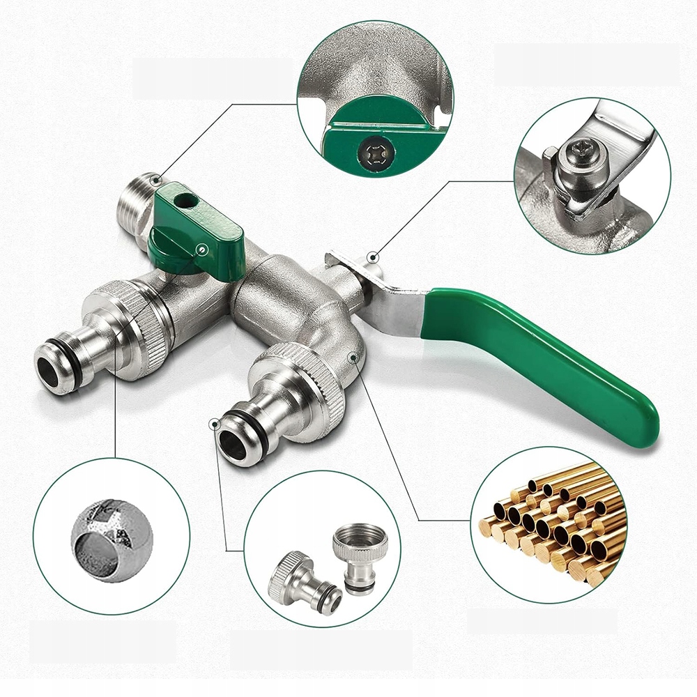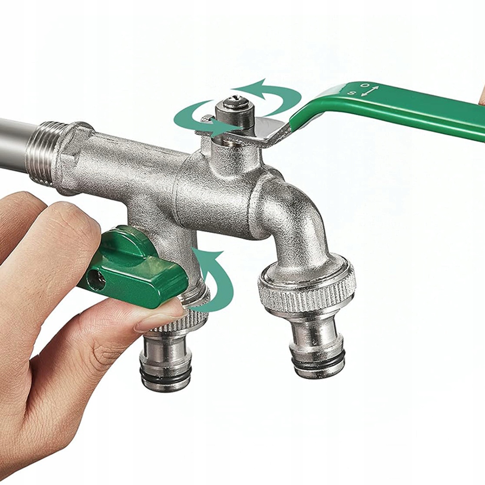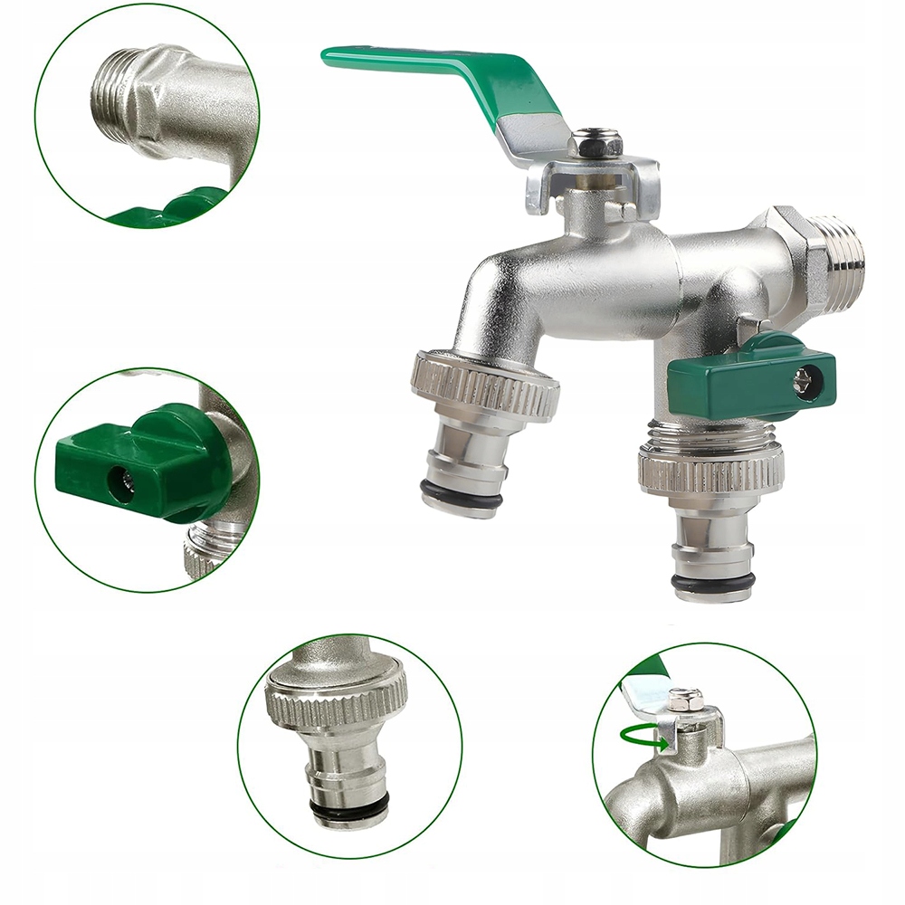 🚰, оснащений двома незалежними вихідними клапанами, стандартний 1 -дюймовий прийом води (21 мм) підключений до двох незалежних торгових точок 3/4 "(26 мм), що означає, що ви можете одночасно з'єднати багато водних труб.