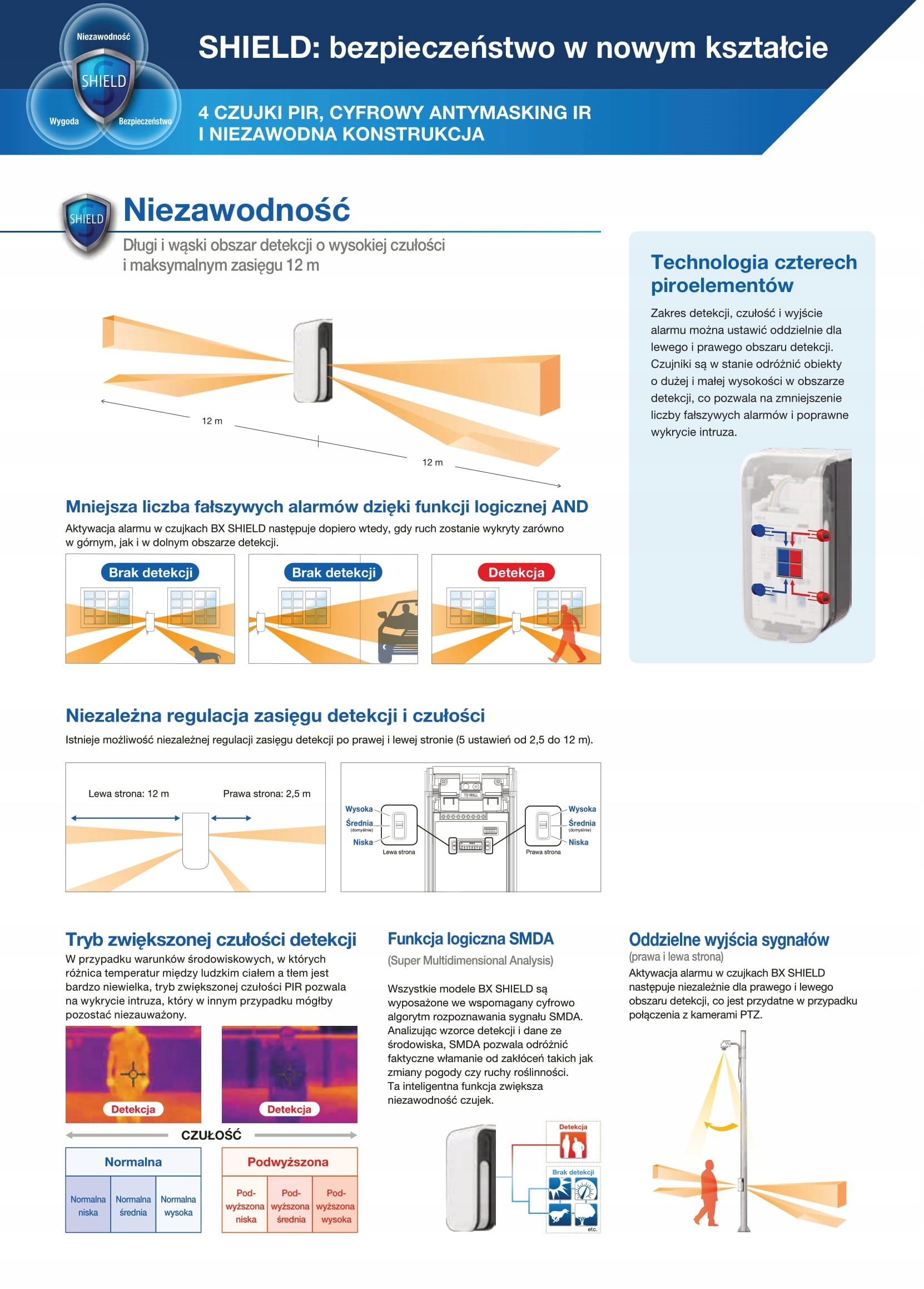 - Діапазон PIR: 24 м, 12 м у кожному напрямку
