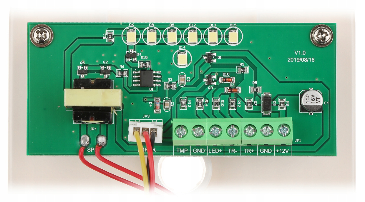 Джерело світла — світлодіоди, а звуковий сигнал генерується за допомогою п’єзоелектричного перетворювача.