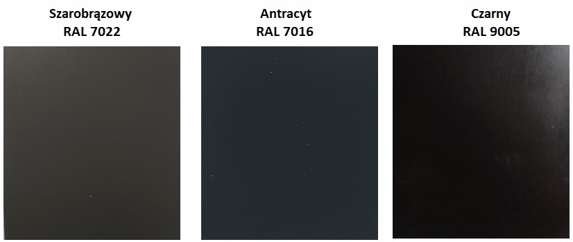 У кольоровому стандарті RAL 7022, антрацит RAL 7016, Black Ral 9005