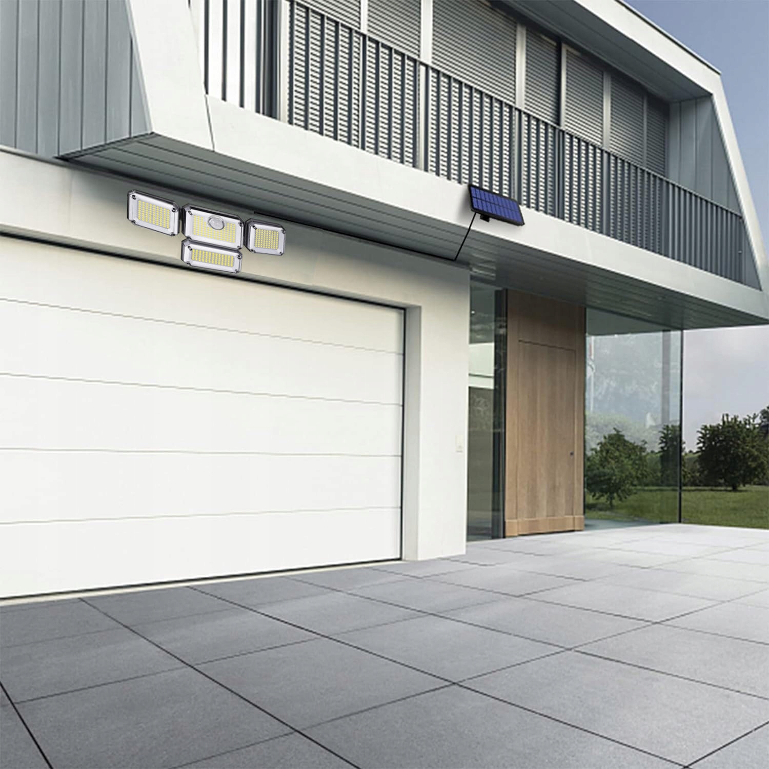 Сильний світлий потік може легко впоратися зі освітленням двору, власності, тротуару або саду. Пристрій оснащений до чотирьох фари , які можна відрегулювати в будь -якому положенні, щоб освітлити всі куточки та крило.