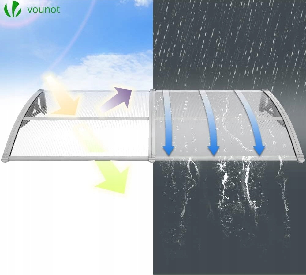 - ✅na Дверний дах використовує міцні 8 -мм аркуші полікарбонату та легкий алюміній , що є іржавим і високостійким до удару, кришка має стабільну структуру, що підтримується на підставці ABS