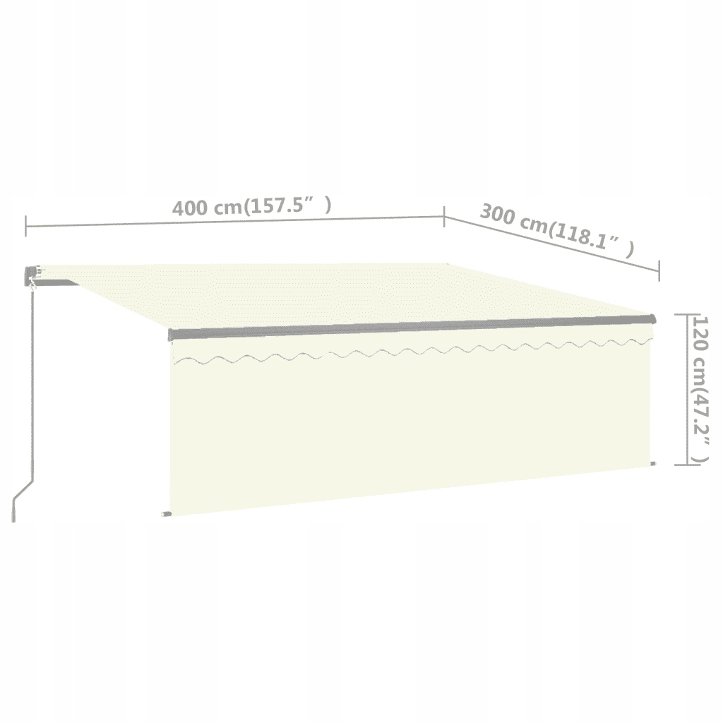 - Матеріал: Алюміній, пофарбований у порошок, тканина зі 100% поліестером з покриттям з покриттям покриття: 4 x 3 m (ширина x висота)