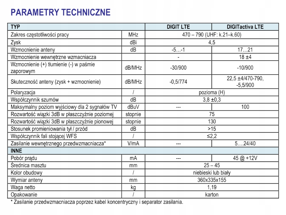 Конструкція цифрової антени забезпечує навіть арматуру сигналу на заданій частоті, що працює в каналі UHF (K21 - K69). Пасивна версія антени "цифра" призначена для областей з хорошими умовами прийняття, тоді як антена в активній версії "Digitactive" присвячена місцям із середніми умовами прийняття.