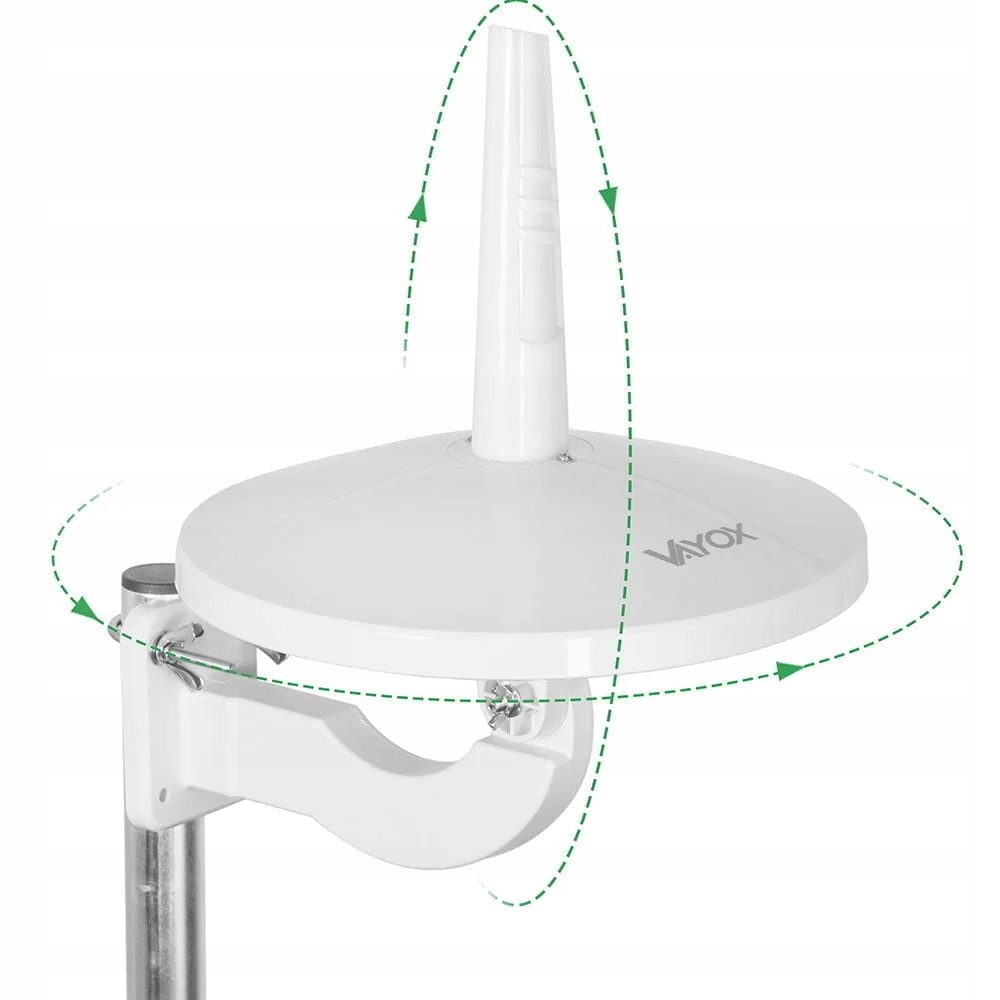 Всеспрямована антена VAYOX VA0066 працює без необхідності ручного налаштування. Автоматичне налаштування сигналу – це рішення, яке без проблем забезпечить ідеальний прийом ТБ.