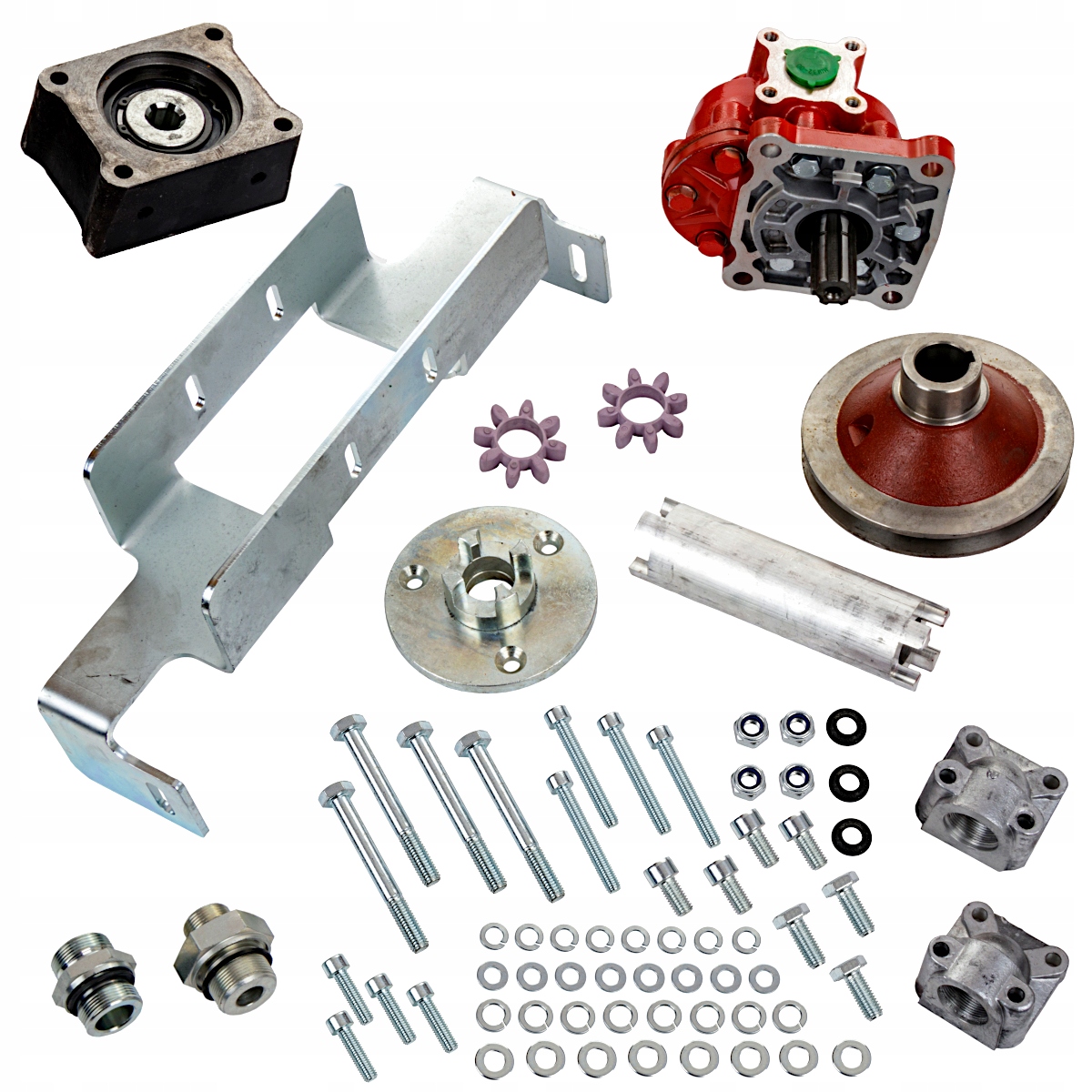Набір не містить гідравлічних шлангів та з'єднання з трактором. Пропозиція включає широкі набори з колектором, резервуаром, фільтром, проводами та роз'ємами, необхідними для належної роботи та підключення набору до трактора.