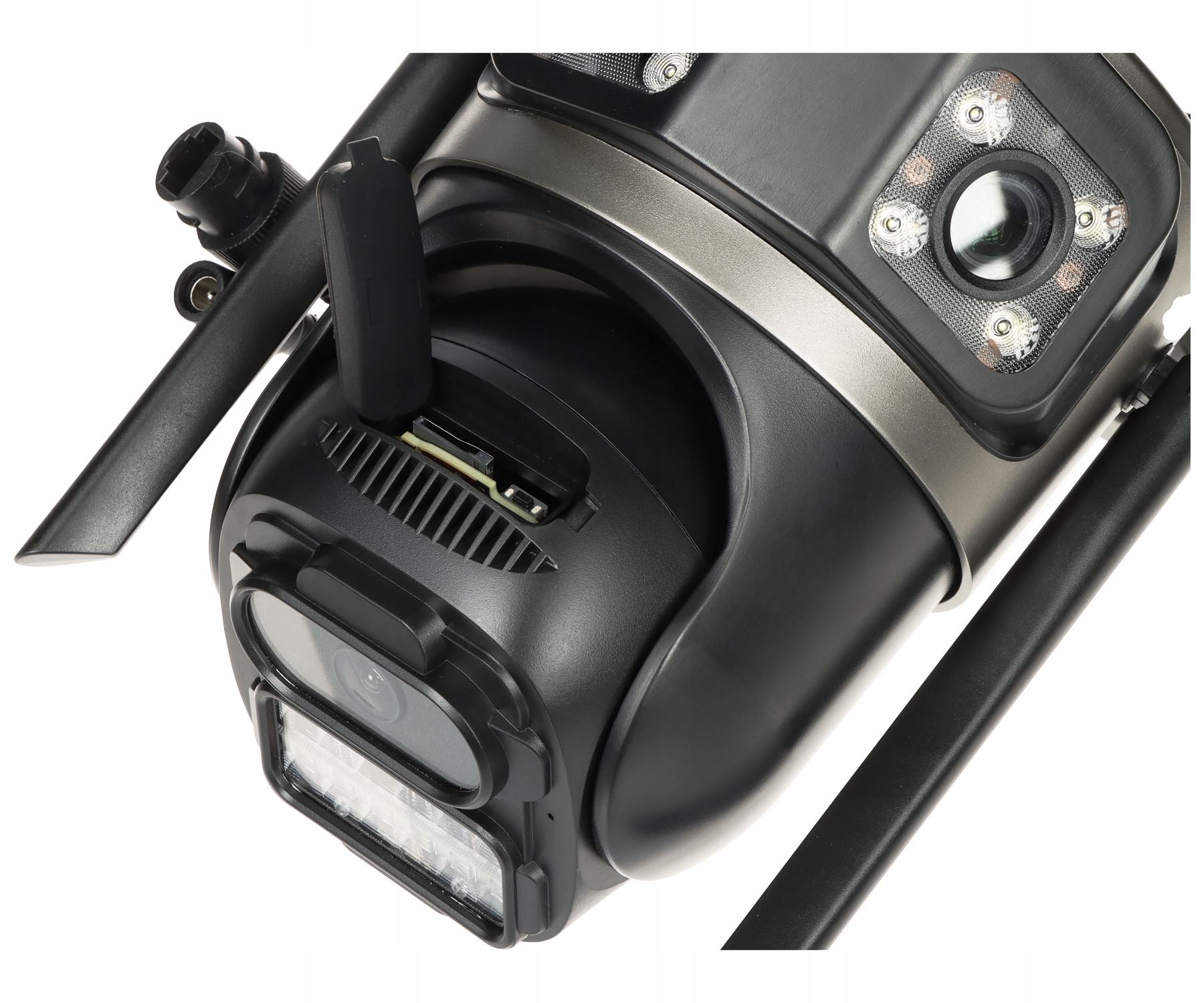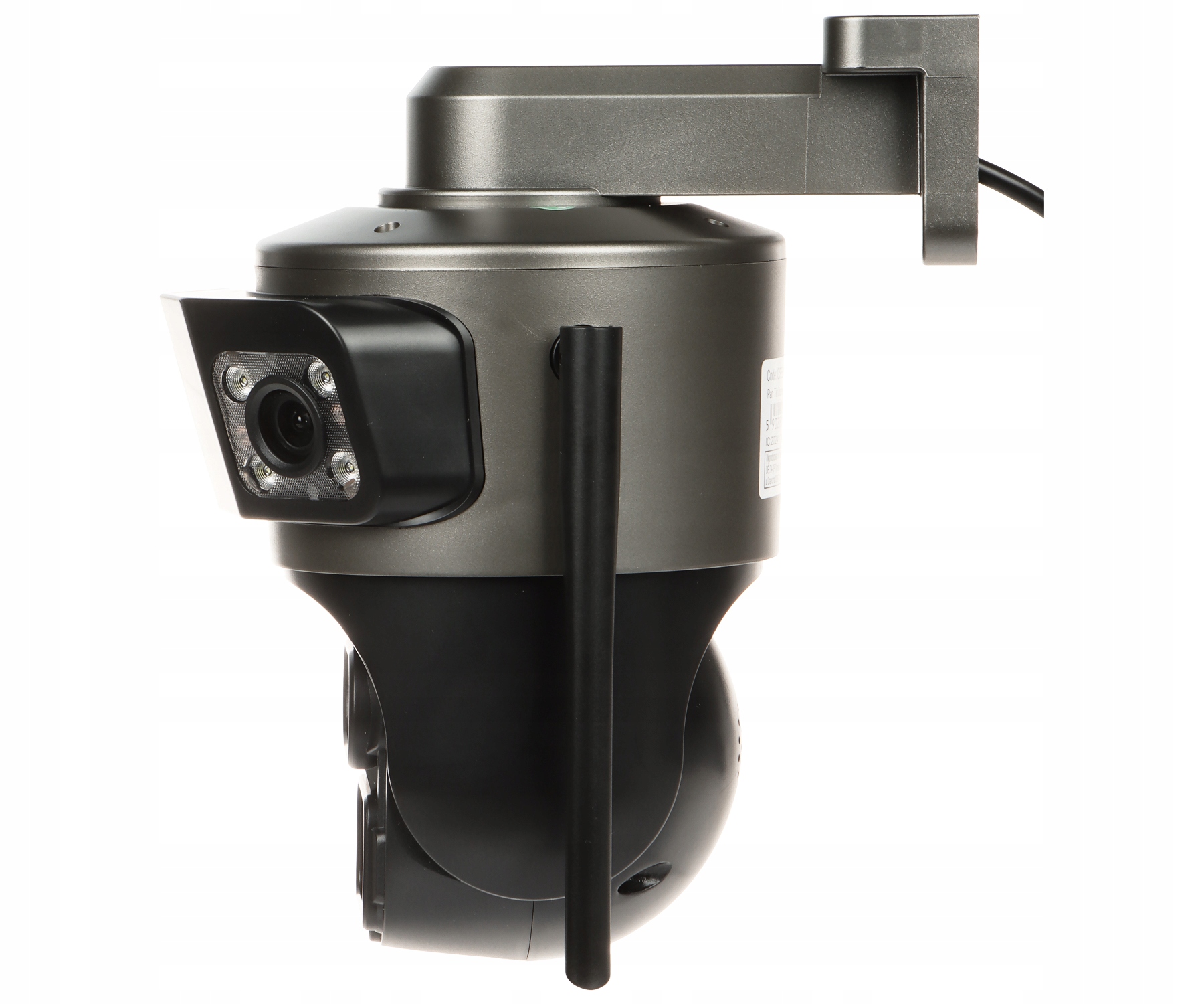 Зовнішня обертова IP -камера Wi -Fi з ефективним алгоритмом стиснення зображення H.265 AI, що забезпечує чисту та плавну передачу зображення в корпусі пристрою, окрім камери в обертовій головці, було встановлено дві стаціонарні камери, з яких зображення можна підключити до панорами.