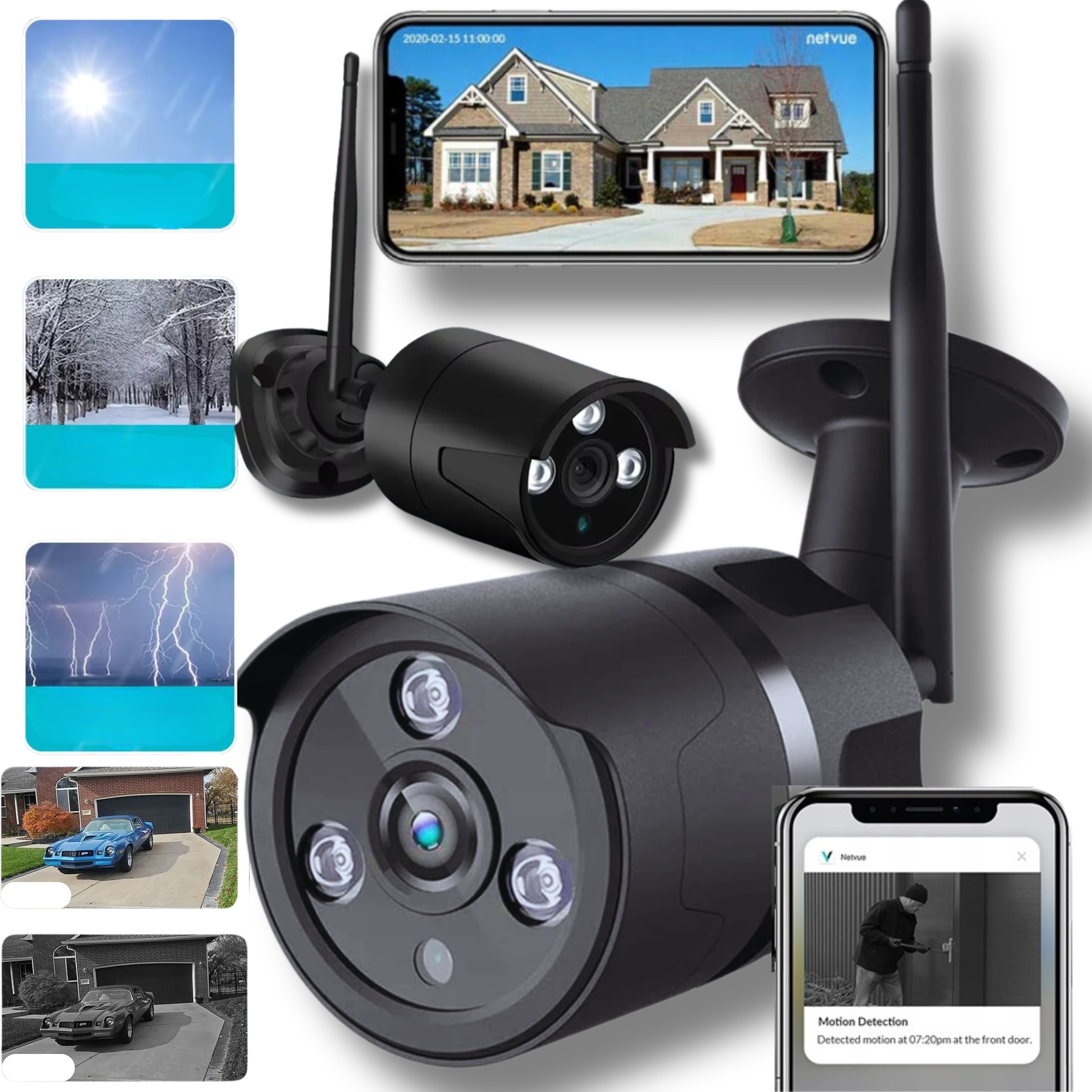 - Зовнішня Wi-Fi камера Netvue здатна записувати зображення та відео з надвисокою роздільною здатністю 1080P як вдень, так і вночі.