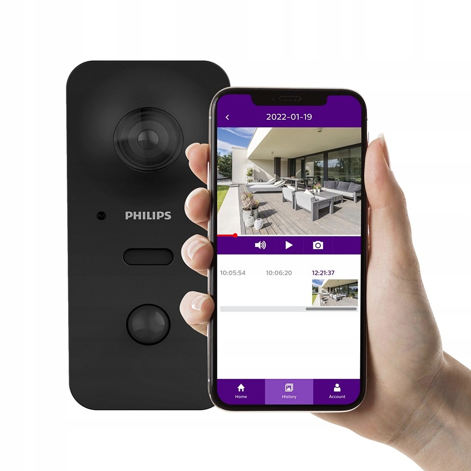 - назва елемента: Philips WelcomeEye View Philips-Ultra HD 2K-Detection Human Forms - Auto-Tracking - вбудована сирена 105 дБ - резервний акумулятор - нічне бачення IP66 чорний