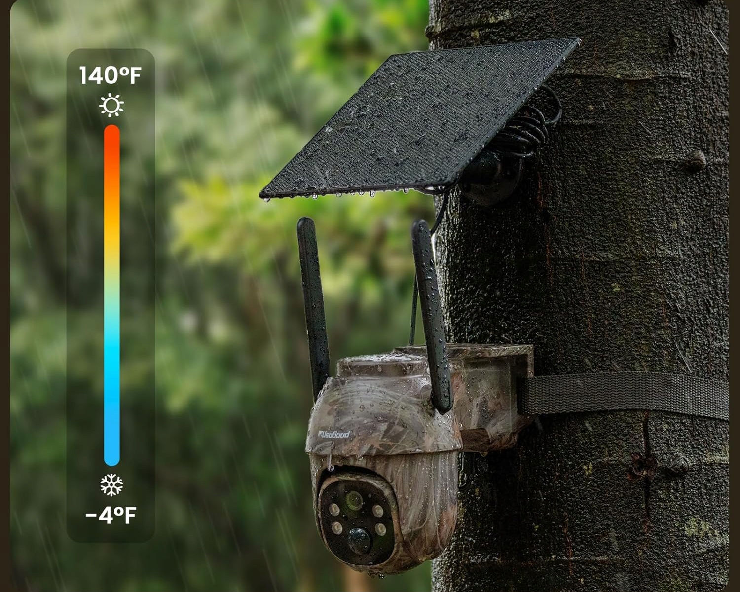 Usogood 4G Solar Camera Cellular Trail Camera ідеально підходить для використання в сільській місцевості, на сараях, фермах, ранчо, складах, фургонах і будівельних майданчиках. У набір входить SIM-карта 4G, сонячна панель потужністю 6Вт і акумулятор ємністю 8400 мАг, що забезпечує 300 МБ пробних даних і постійне живлення.