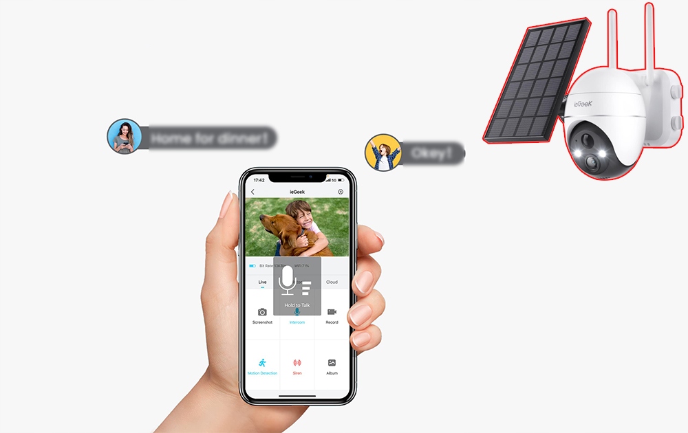 Покращений алгоритм виявлення руху RIP AI покращує людське розпізнавання та зменшує помилкові тривоги. Ви можете налаштувати план будильника/налаштувати 10-рівневу чутливість будильника/отримувати своєчасні сповіщення через APP. Завдяки вбудованому розширеному мікрофону та динаміку ви можете розмовляти з людиною перед камерою в реальному часі або відлякувати зловмисників.