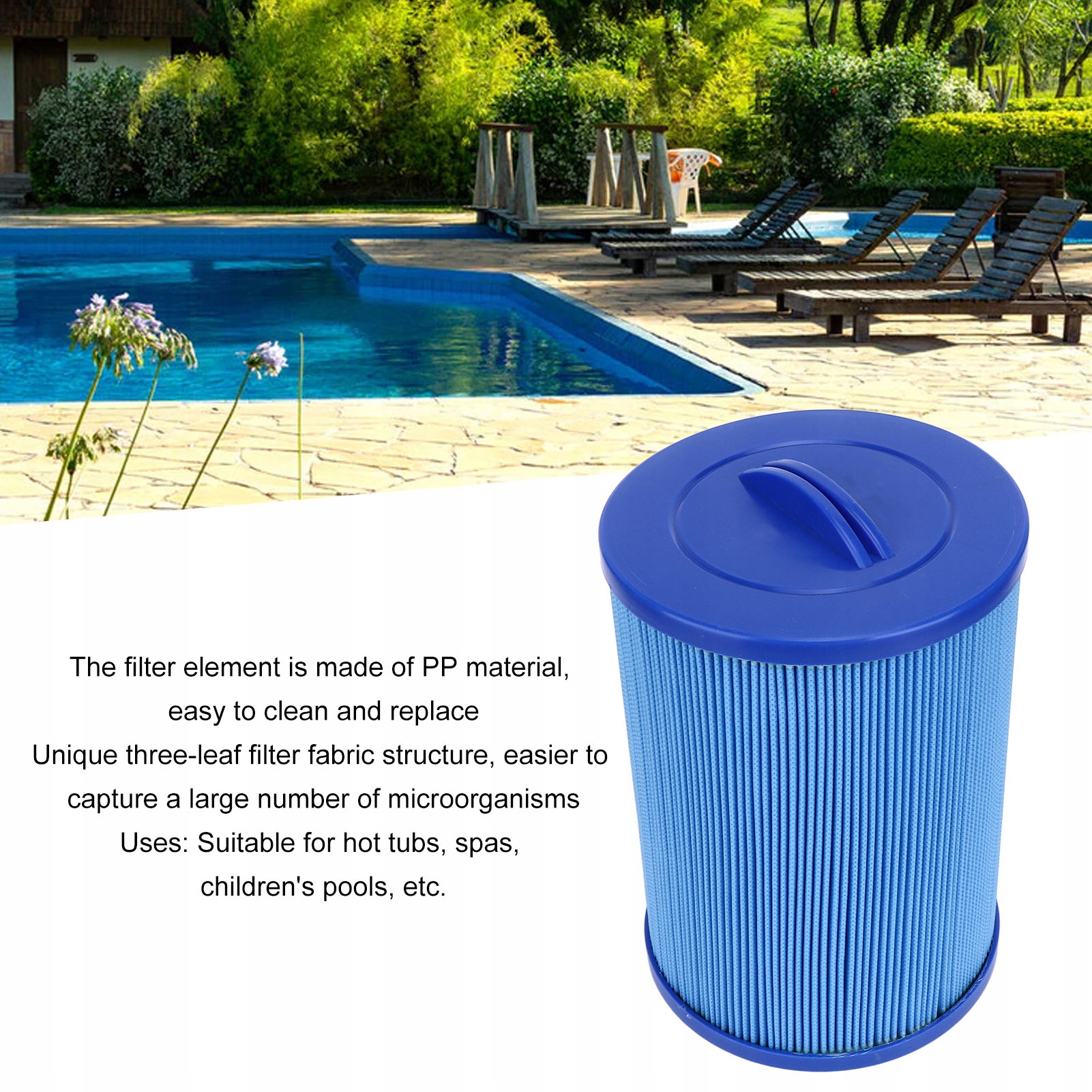 5. Застосування: підходить для гідромасажних ванн, спа, дитячих басейнів тощо. Ви можете насолоджуватися чистим дозвіллям у спа та гідромасажних ваннах із цим фільтром для басейну.
