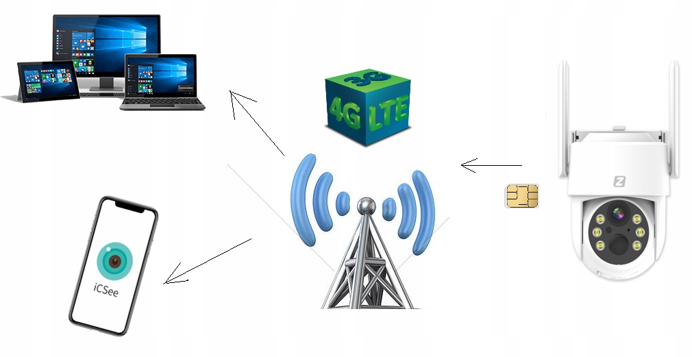 Камера має слот для SIM-карти та 2 антени, які підсилюють прийом сигналу GSM. Це забезпечує віддалений доступ до камери за допомогою мережі GSM 3/4G LTE.
