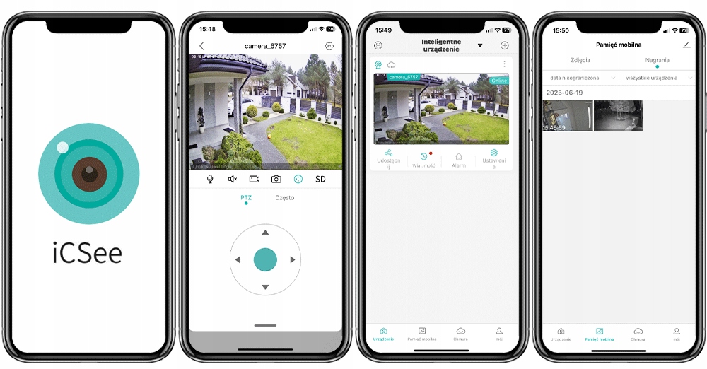 Інтуїтивно зрозуміла польськомовна програма iCSEE - дозволяє постійно переглядати контрольоване приміщення та переглядати записані події на картці MIcro SD. Ви також можете фотографувати та записувати відео в додатку (фотографії та записи будуть збережені на смартфоні з установленим додатком).