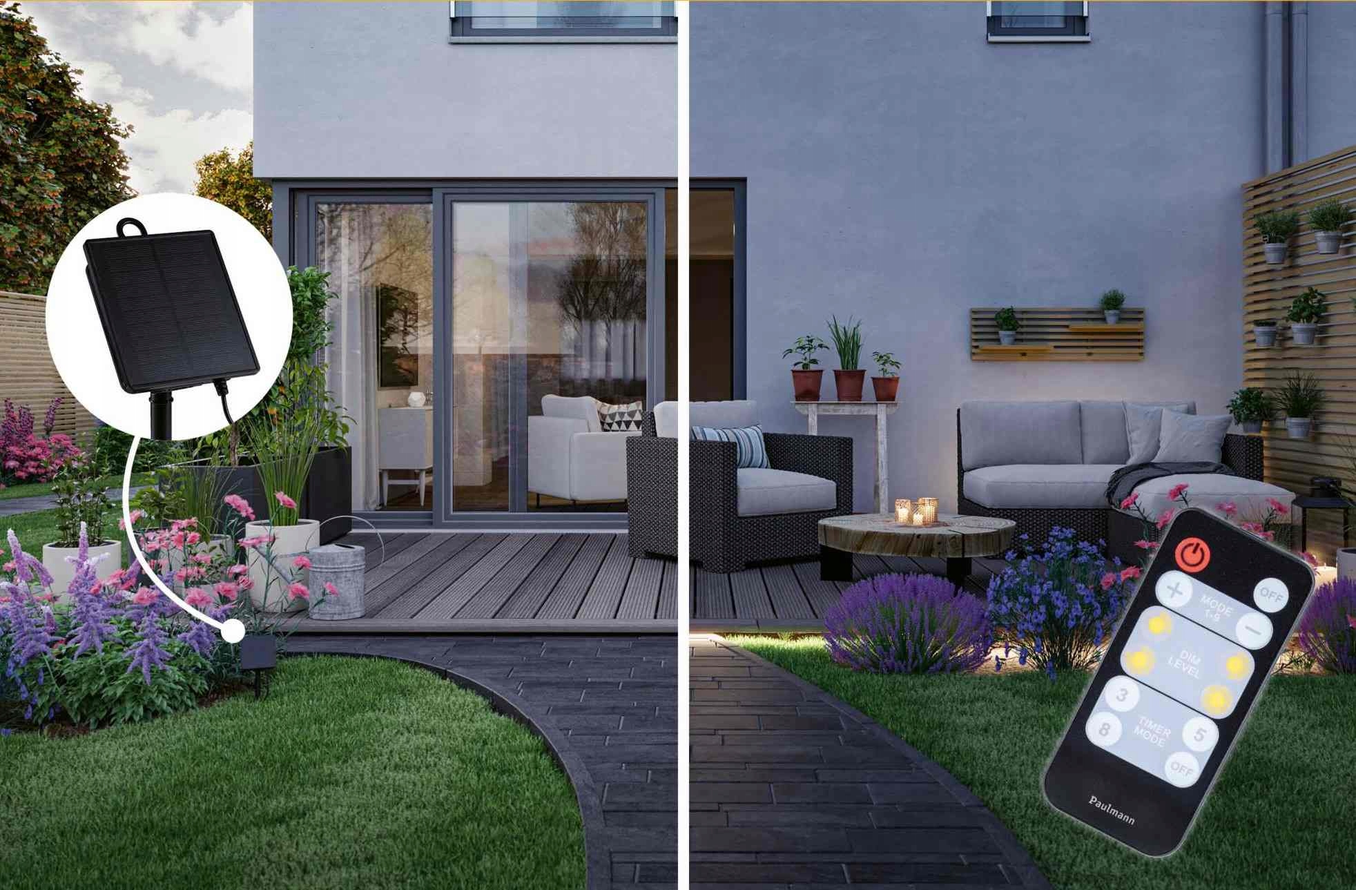 Зовнішня стрічка Світлодіод Solar 5m 3,2 Вт DIM RGB 22LM/M Пілот сутінки Пілот 5V IP44 Чорний/пластиковий код продукту Paulmann PL71194