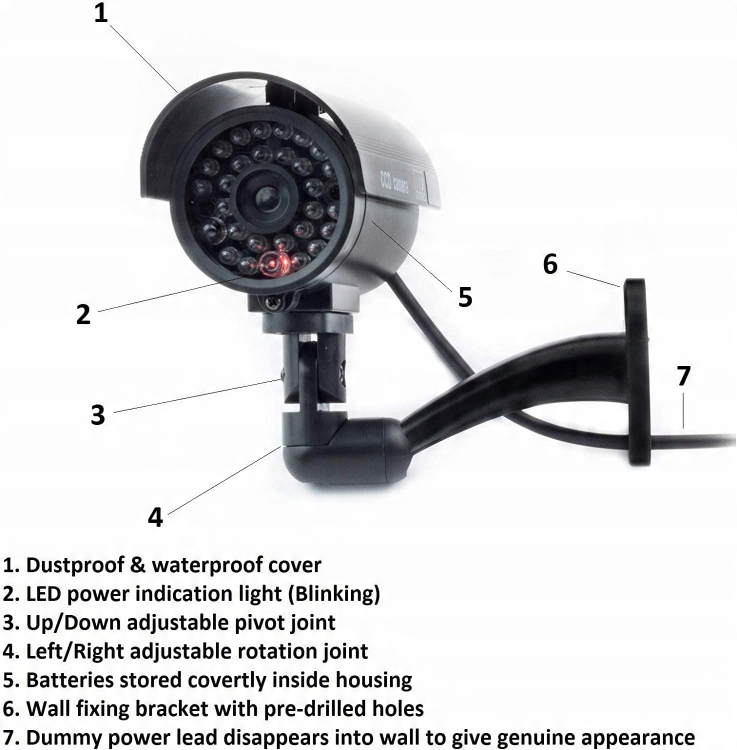 - Реалістичний вигляд манекена, камера відеоспостереження, такого ж розміру, як і справжня камера.