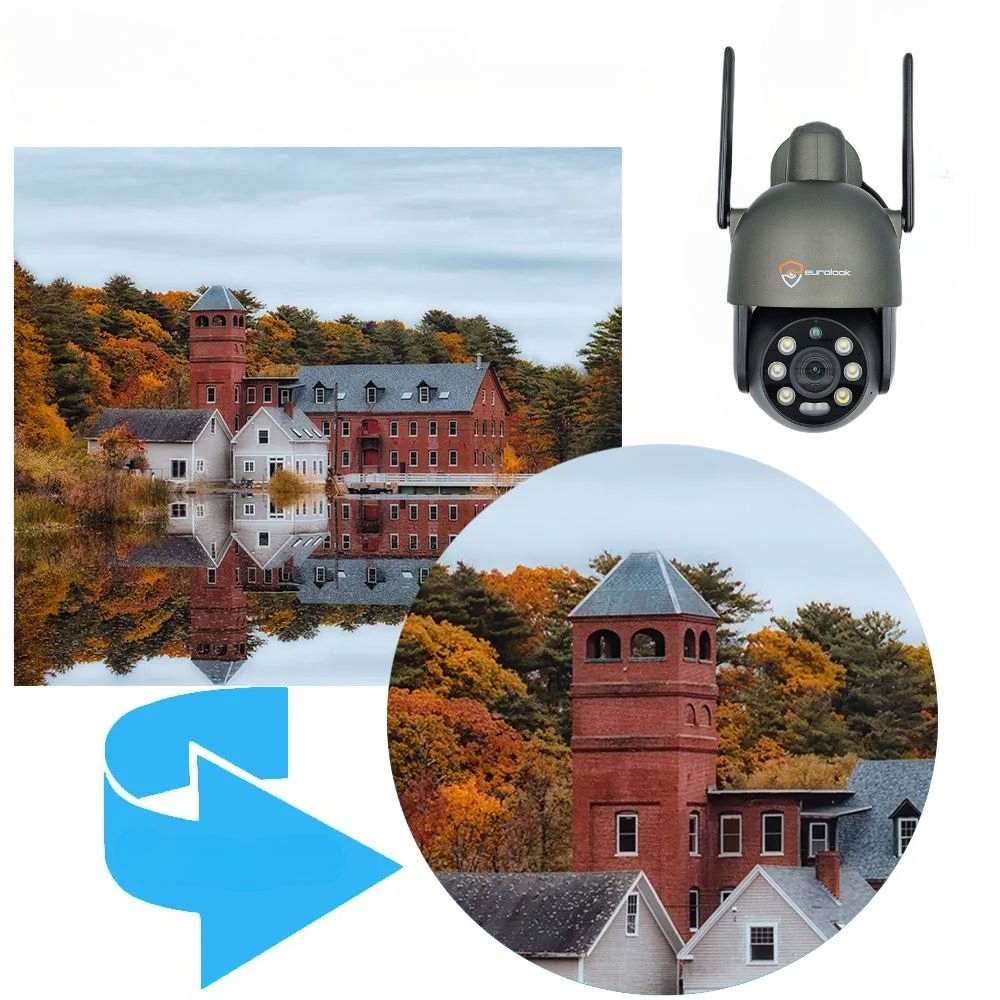 - Обертова камера з роздільною здатністю 8MPx, із двостороннім аудіозв’язком і розпізнаванням людських силуетів.