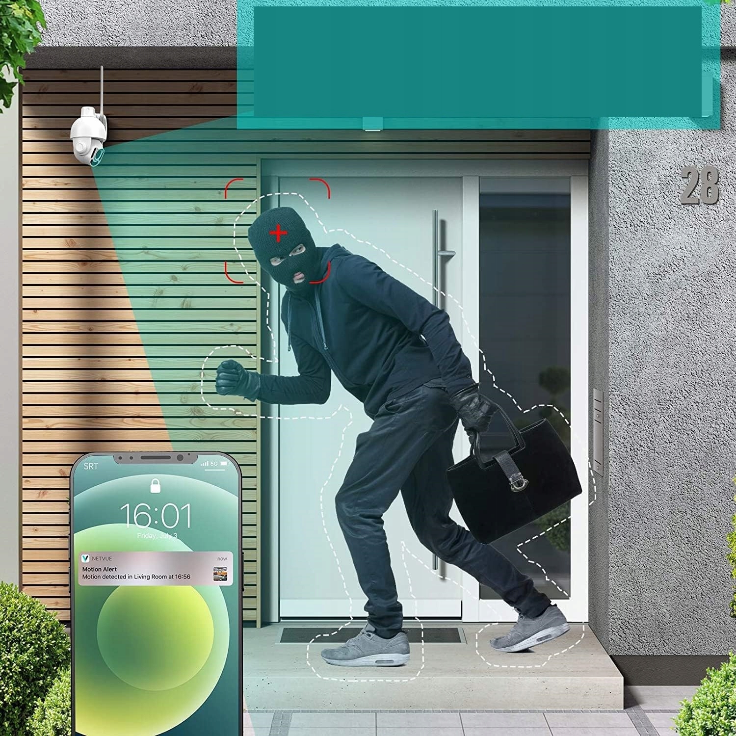 Двостороннє аудіо та підтримка Alexa; IP-камера Netvue Sentry Pro оснащена дуже чутливим мікрофоном і динаміком, що дозволяє спілкуватися з гостями або близькими з будь-якого місця. Зовнішня камера безпеки Netvue Sentry Pro підтримує SD-карти (не входять до комплекту, до 128 ГБ) і 60-денну службу хмарного зберігання. Ця зовнішня камера може працювати з Alexa для живого відео та двостороннього аудіо, просто скажіть «Alexa, покажи мені вхідні двері», сцена буде відображена на Echo Show
