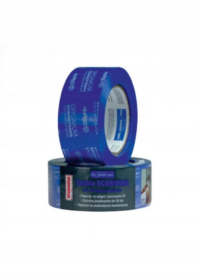 Зовнішня захисна стрічка Blue Dolphin призначена для зовнішніх фарбувальних і загальнобудівельних робіт. Використання спеціального носія з клейкою речовиною дозволяє легко і чисто зняти скотч, не пошкоджуючи поверхню і не залишаючи слідів клею. Характеризується стійкістю до УФ-променів, вологи, перепаду температур і механічних пошкоджень. Цей продукт призначений для гладких поверхонь, таких як скло, пластик, алюміній, метал, вініл або дерево.