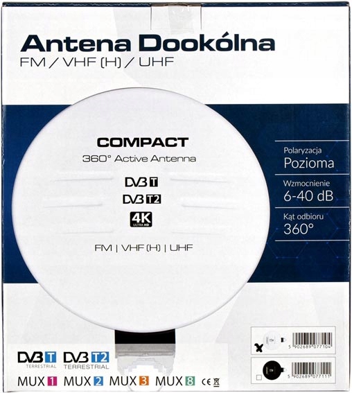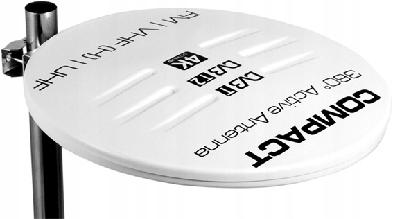 Активна антена з підсилювачем DVB-T/T2 зовнішнім високим для отримання цифрових наземних телевізійних телевізійних станцій, включаючи MUX8 (залежно від міцності передавача). Перевага антени - її невеликий розмір і вага.