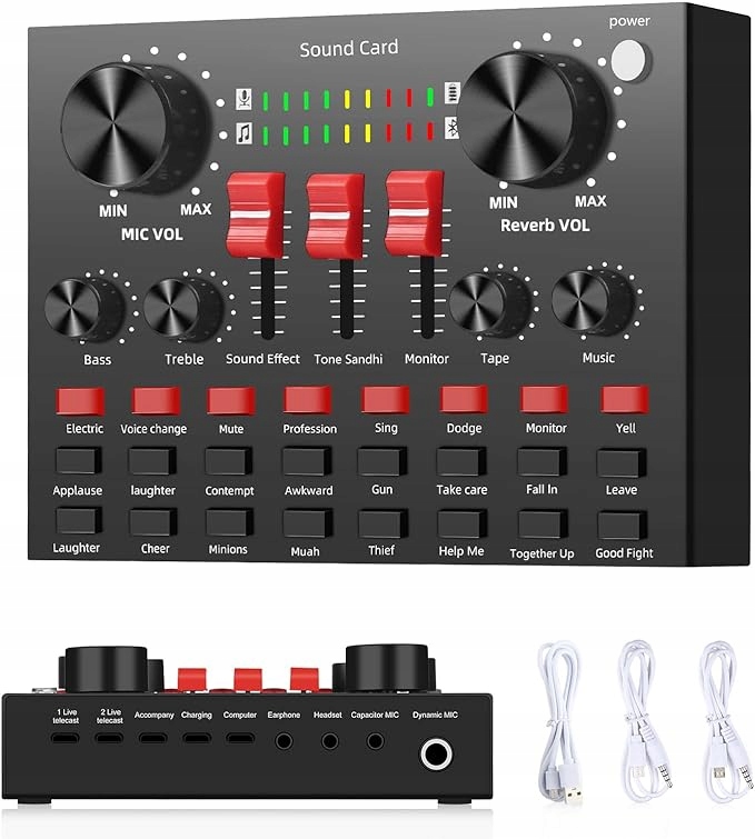 - ✅ 1. Професійна технологія шумозаглушення: вбудований подвійний чіп шумозаглушення DSP і ECHO, у голосовому перемикачі звукової карти є подвійні мікросхеми шумозаглушення DSP, щоб уникнути впливу навколишнього шуму та забезпечити високу якість звуку; з реверберацією (ECHO) робить ваш голос більш захоплюючим.