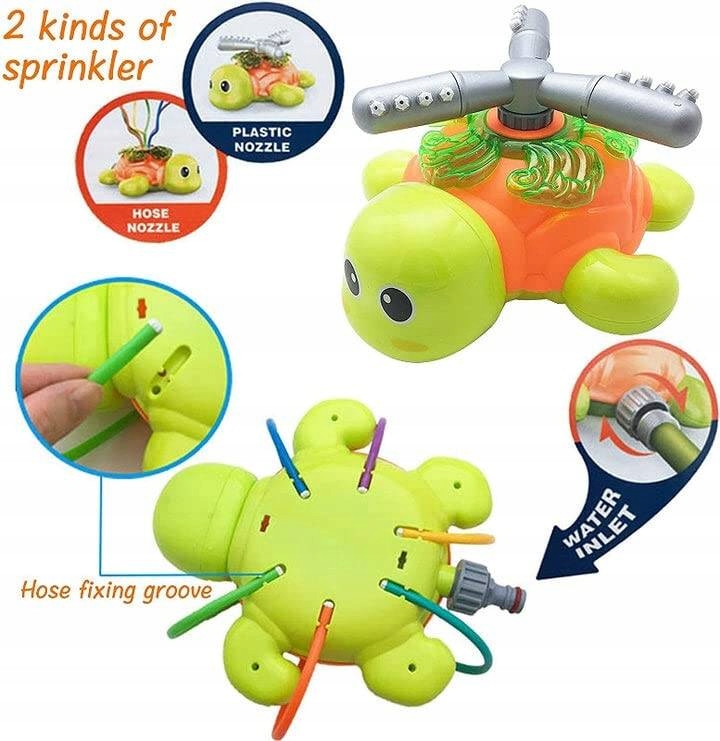 Чарівний дизайн: спринклер за формою нагадує черепаху, що неодмінно приверне увагу багатьох людей. Фігурка оснащена виступаючими трубочками в самому верху, через які вода бризкає на всі боки.