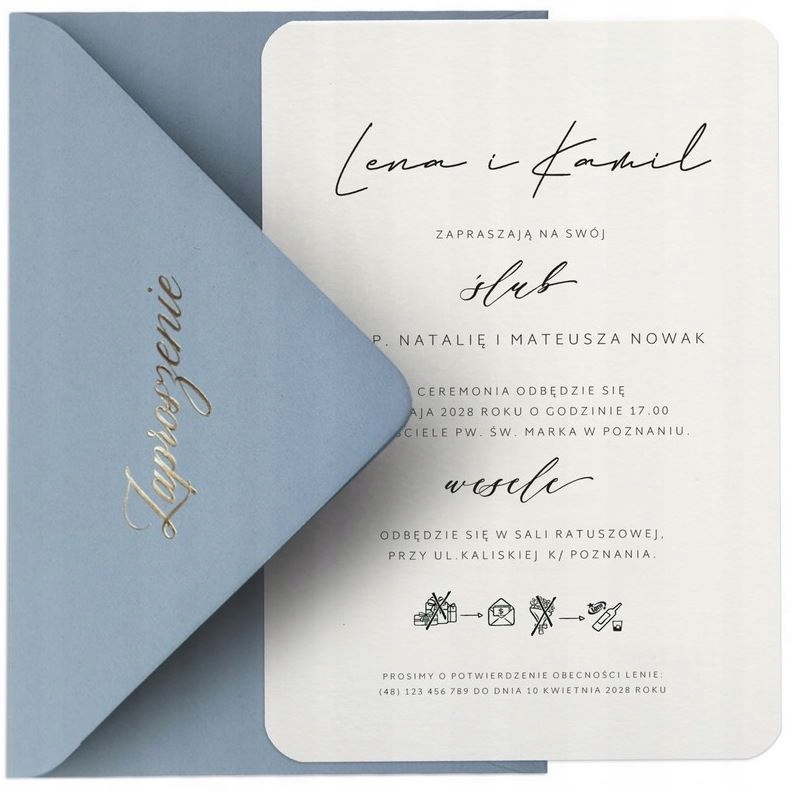 Просматривая «Образцы / минималистские свадебные приглашения пыльный синий / золотая надпись / zsmp02», вы можете быть уверены, что данный товар из каталога «[rubrica_name]» будет доставлен из Польши и проверен на целостность. В цене товара, указанной на сайте, учтена доставка из Польши. Внимание!!! Товары для Евросоюза, согласно законодательству стран Евросоюза, могут отличаться упаковкой или наполнением.