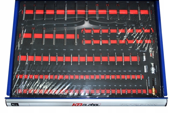 Професійний шафа інструментів з обладнанням, призначеним для автомобілів та автомобільних майстерень, а також послуг. Інструментальний візок з шістьма ящиками характеризується посиленими стінами та профілями. Шафа для майстерні має широкий пластиковий верх і гумовий амортизатор з боків. Можливість центрального закриття всього кабінету або лише окремих ящиків. Чотири дорожні колеса, включаючи два поворотні, з гальмом, полегшують транспорт та рух шафи під час роботи. Шафа семінару, оснащений набором спеціально вибраних 234 елементів.