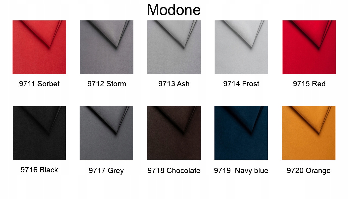 Модон - оксамитова тканина з м'якою і приємною на дотик структурою. За візуальний ефект тут відповідають пастельні тони. Тканина характеризується хорошою стійкістю до відшарування і підвищеною стійкістю до подряпин і порізів кігтями тварин, завдяки чому її відносять до Pet friendly матеріалу. Крім того, матеріал виготовлений за технологією Easy Clean. Ця формула полегшує догляд за тканиною та видалення будь-яких плям.