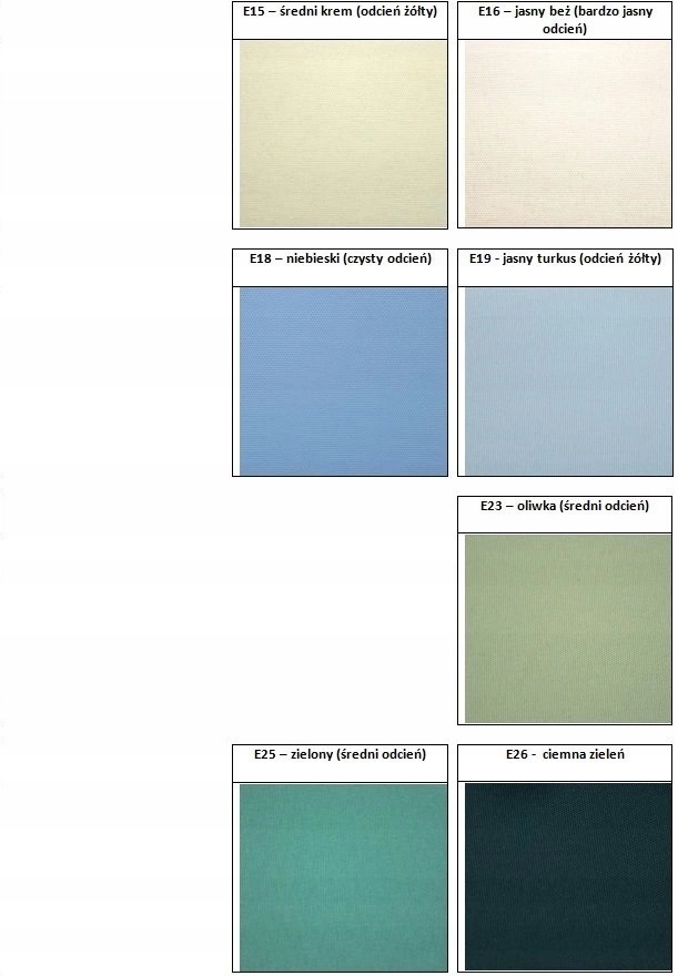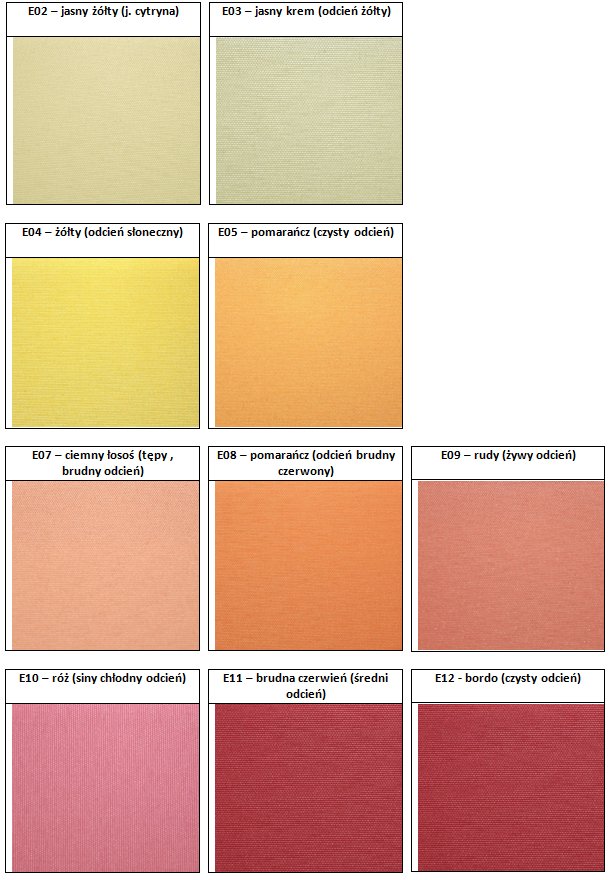 Група E, P, T - гладка тканина, товщина 190 гр. Світлопроникність від 15% (темні кольори) до 25% (світлі кольори)