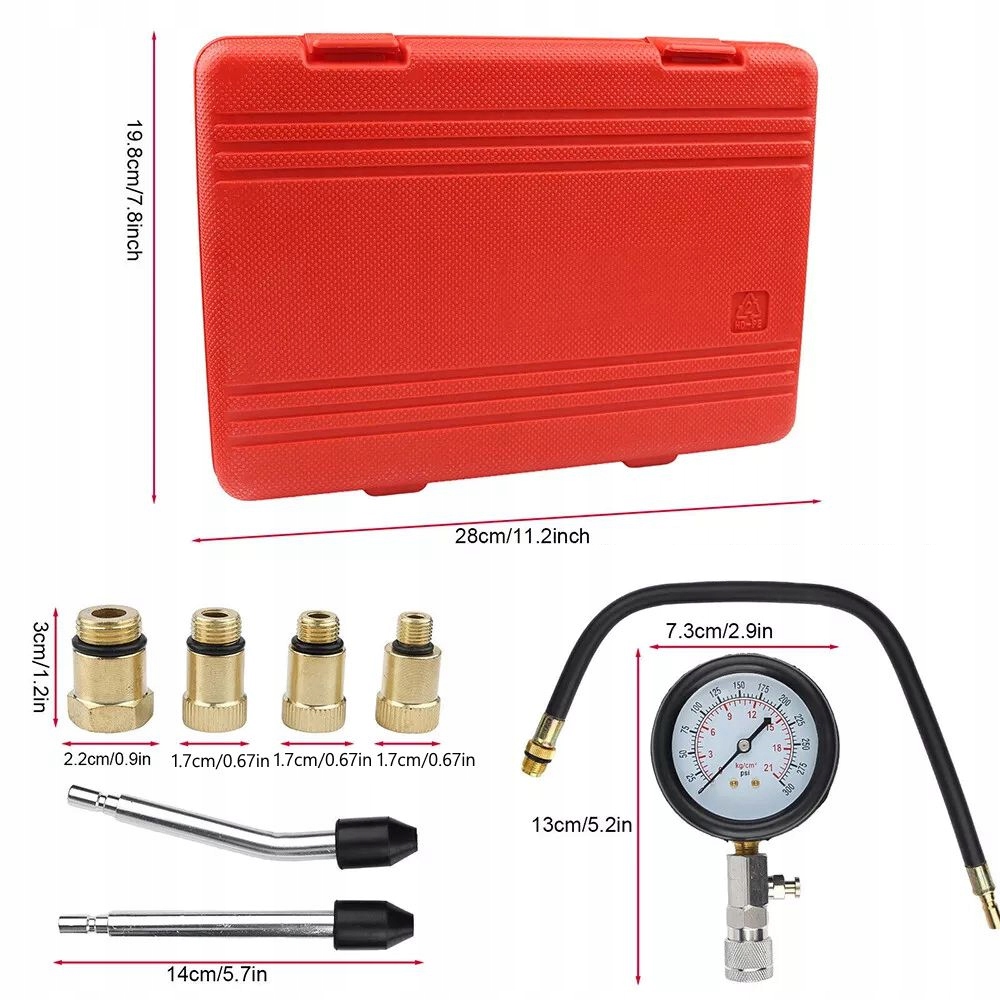 Цей комплект тестера стиснення автомобіля може швидко та обережно перевірити стиснення. Компактний і малий, з чіткими показаннями лічильника, є ідеальним аксесуаром для любителів механіки.