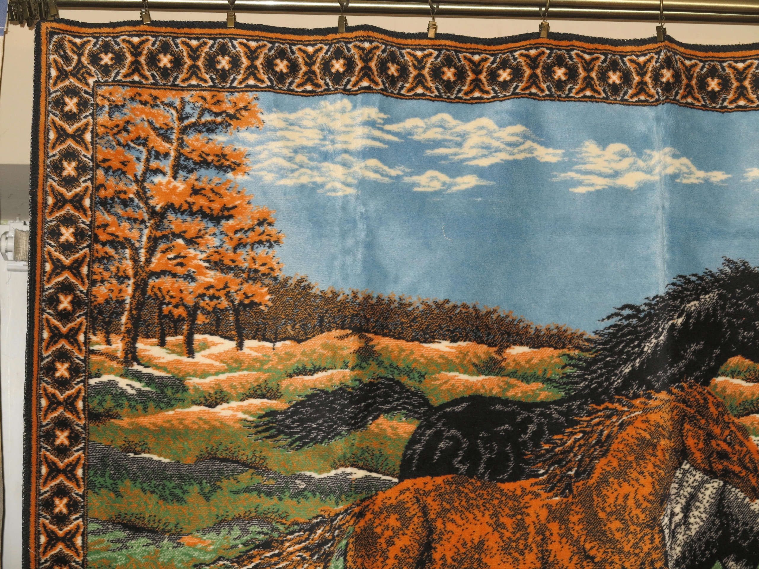 Предметом аукціону є надзвичайно красивий килим із зображенням скачучих коней, виготовлений з бавовняного оксамиту. Килими б/в, в дуже хорошому стані. Рекомендую