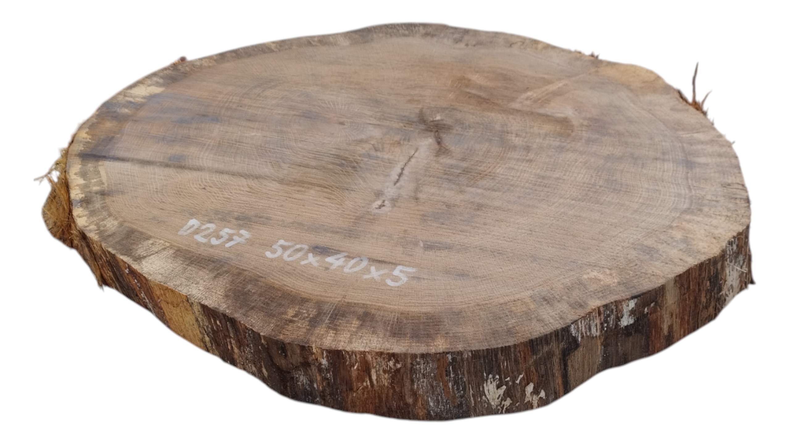 У нас є диски з різних порід дерев: акація, дуб, горіх, ясен, каштан, вишня, яблуня, груша, явір, тополя. Наша пропозиція включає скибки від 20 см до 120 см з товщиною 3-12 см.