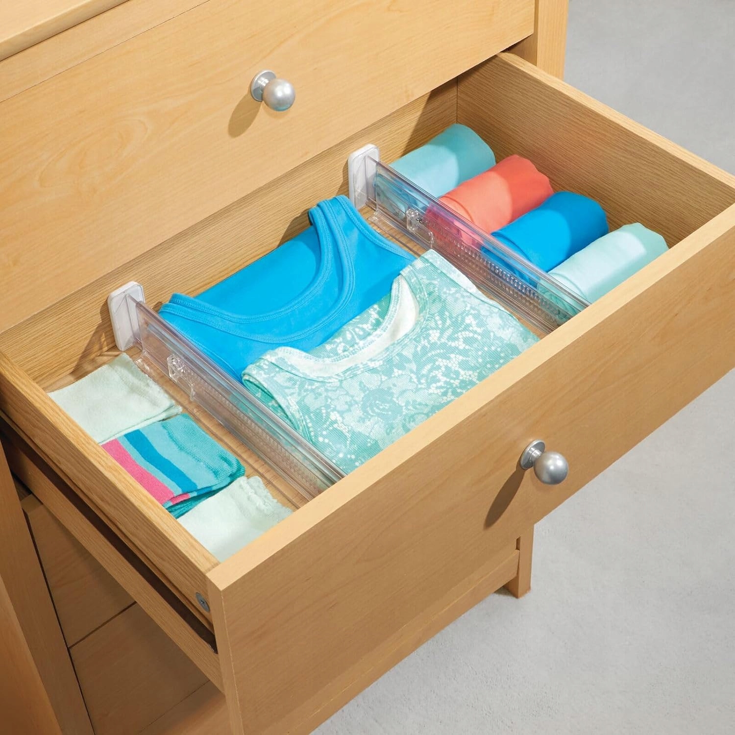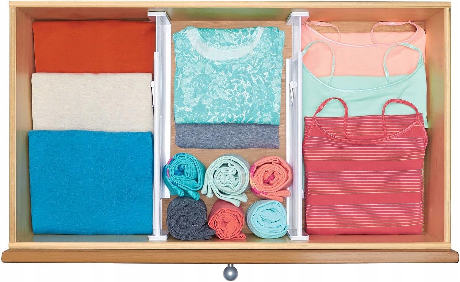 Гнучка складання: Ящикні відсіки адаптуються до кожного ящика. Щоб встановити, просто підніміть важіль, відрегулюйте розмір і знову закрийте важіль. Це так просто! Ви також можете сортувати столові прилади та інструменти. Ви можете створити 3 прокладки з двох відділень.