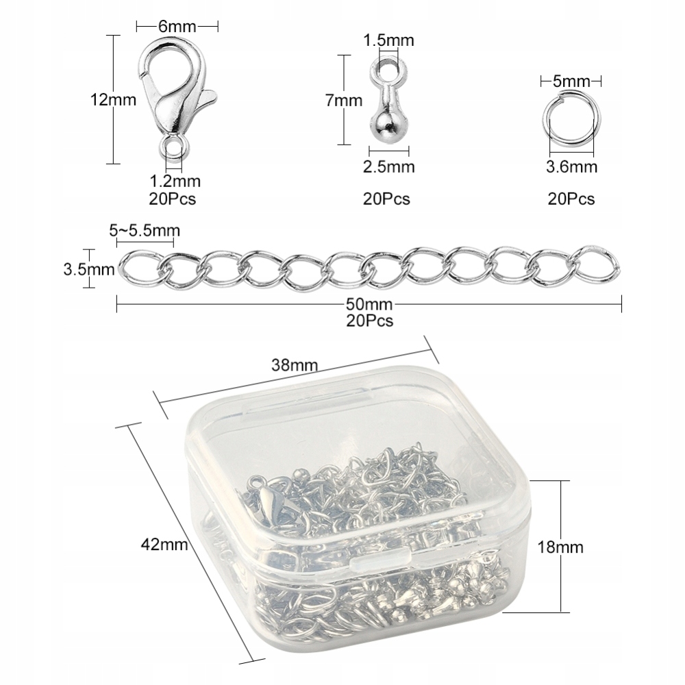 Тип елемента: Карти, підвіски, посилання, ланцюги кожного типу 20 шт. Включає пластикову коробку для зберігання.