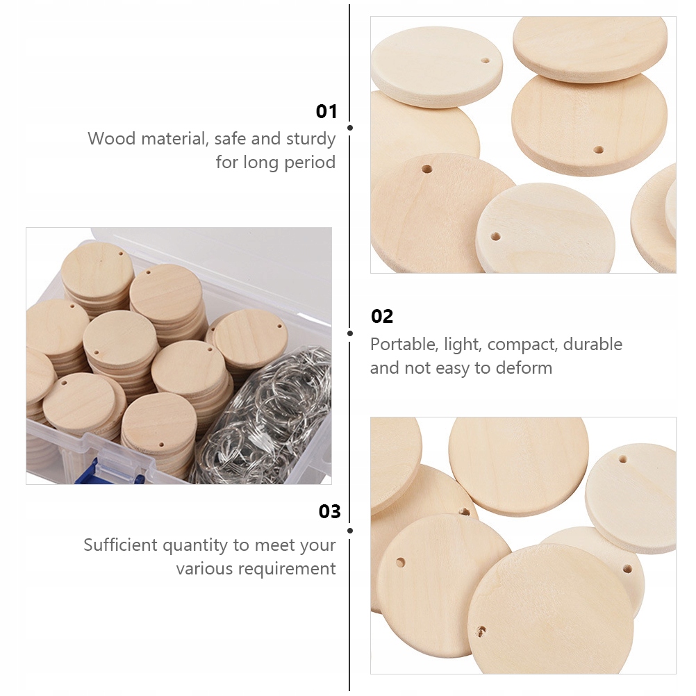 ✅ У формі кола та 100 штук є 100 штук дерев’яного підвіски. Досить, достатньо, щоб задовольнити ваші потреби. Поверхня дерева добре відшліфована, завдяки якому вона має плавне почуття руки. Він довговічний.