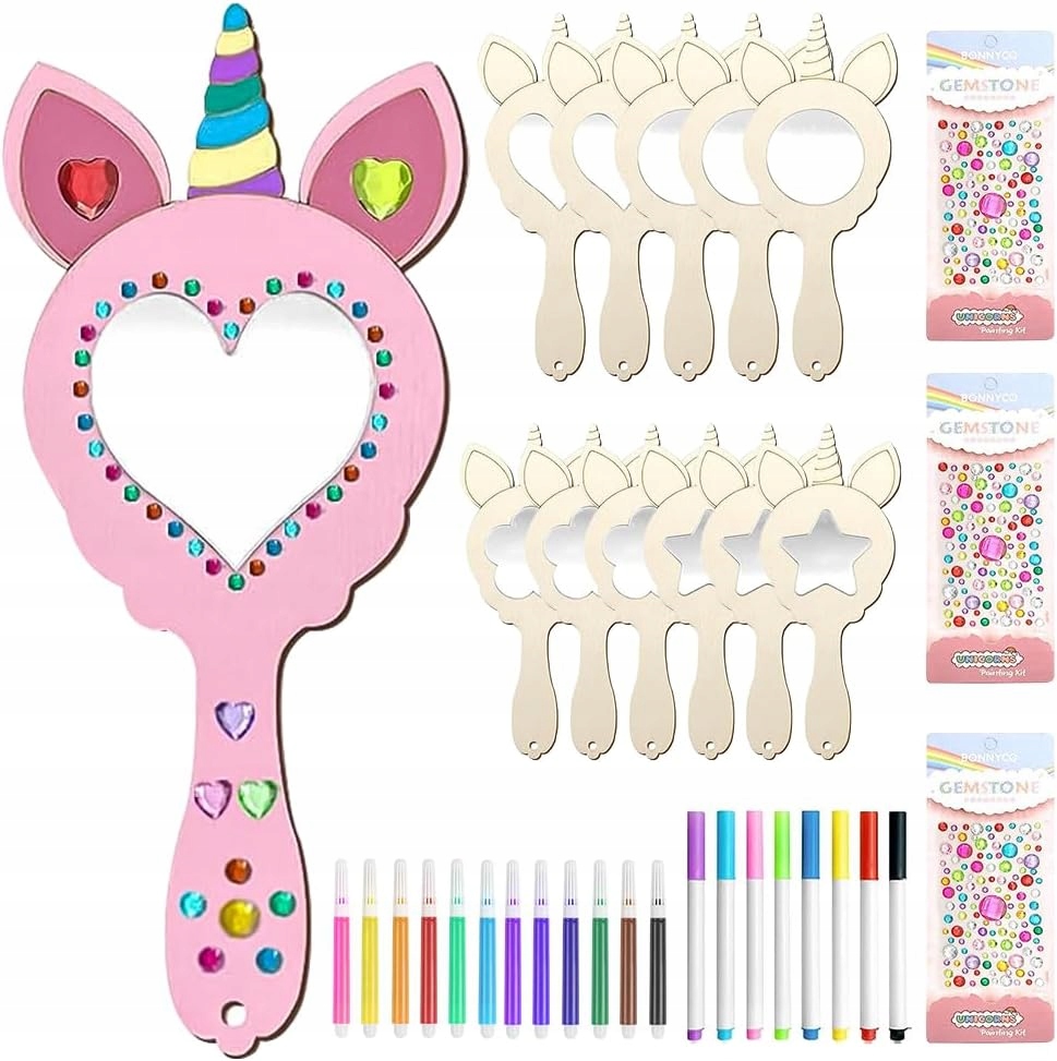 Нефарбовані, різьблені дзеркала в мотиві єдинорога дозволяють дітям створити власні унікальні проекти.