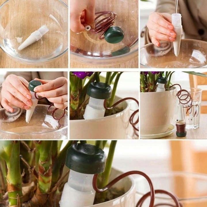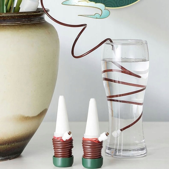 Дозатор автополиву — це простий і ефективний спосіб поливу рослин. Ідеально підходить для людей, які подорожують і хочуть бути впевненими, що їхні рослини правильно поливаються під час їх відсутності. Вода подається через керамічний конус, розміщений у горщику з рослиною. Він підходить для будь-яких видів рослин, які потребують поливу.