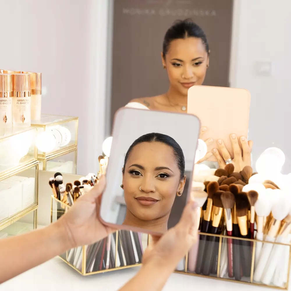 , оснащений оптичним склом високої якості, наше дзеркало забезпечує надзвичайно чітке відображення, що дозволяє в будь -який час точний контроль макіяжу та зовнішнього вигляду. Оббивка, яка не лише підкреслює її естетику, але й захищає склянку від випадкових пошкоджень.