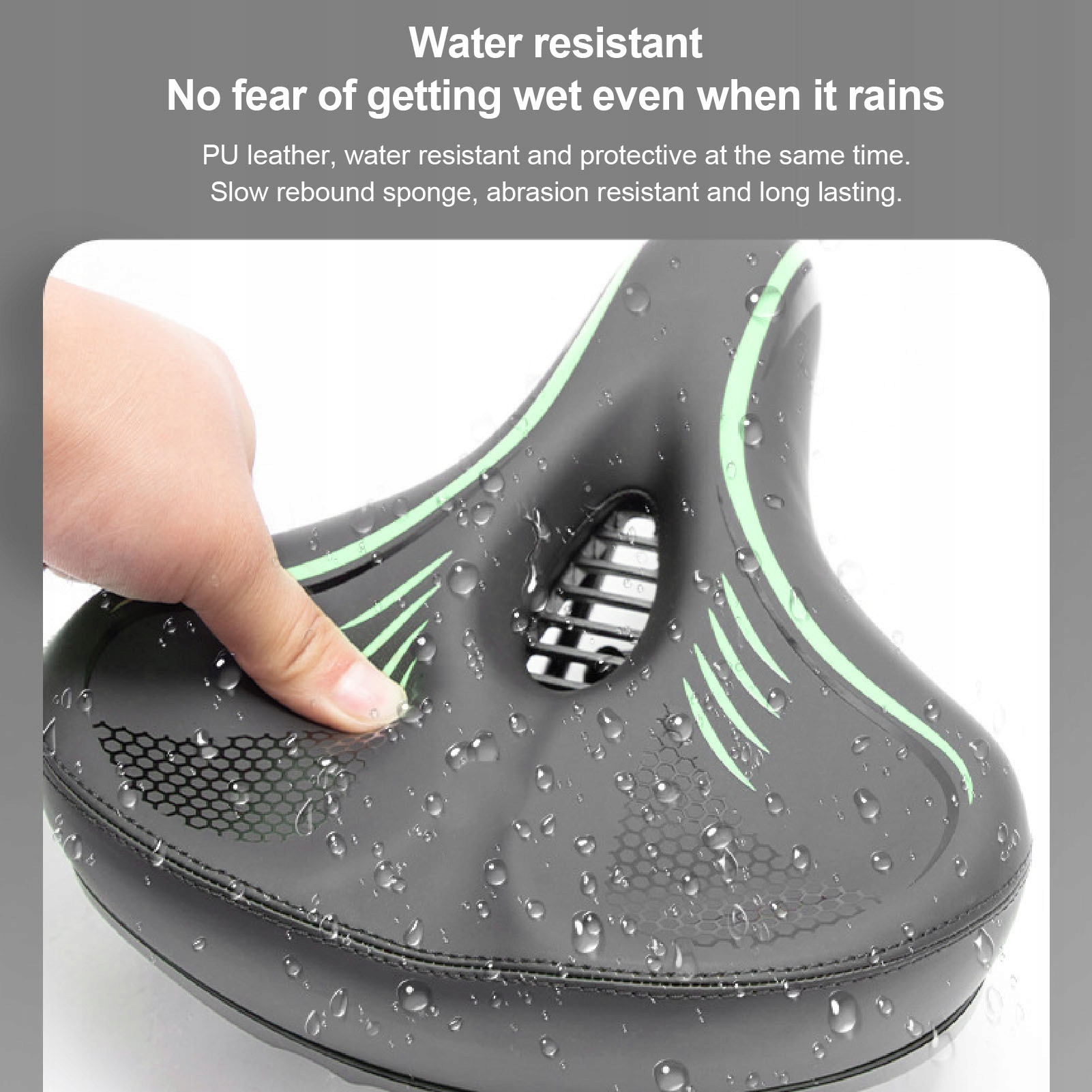 3. Високоякісна поліуретан-шкіра: зроблена з преміальної поліуретанової шкіри, подушка велосипедного сидіння є водонепроникною, захисною та високозносостійкою, що забезпечує довговічність.